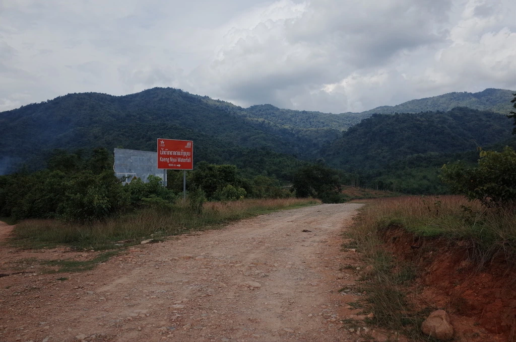 큰 길을 따라 쭉 운전해서 방비엥으로 향하는데 갑자기 왼쪽에 폭포로 가는 길이라는 이정표를 지나친다. 폭포? 갑자기 삘이 돋아서 오토바이를 멈추고 되돌린다. 이정표 앞에서 1분 고민하다 그쪽 길로 빠진다.