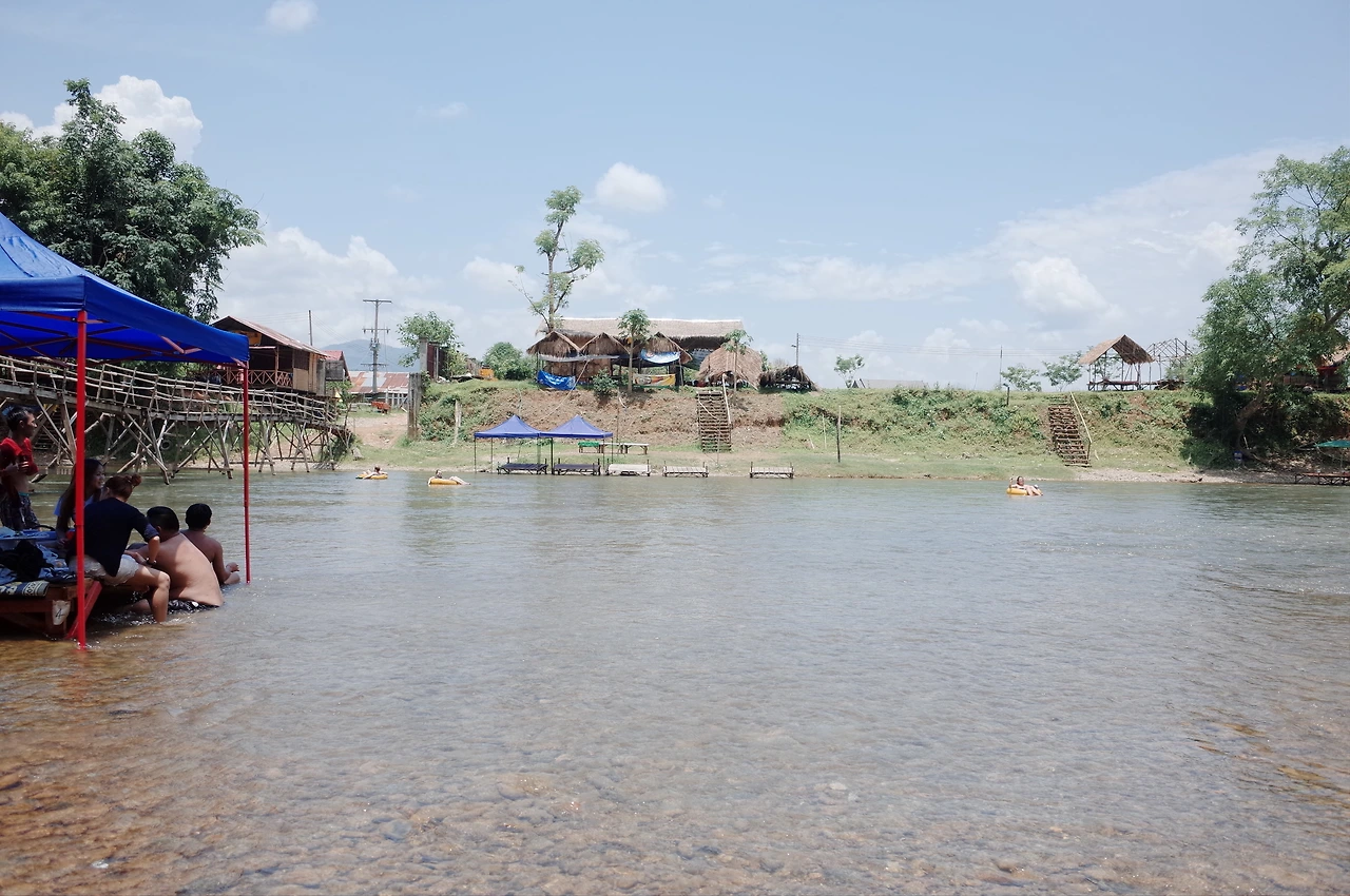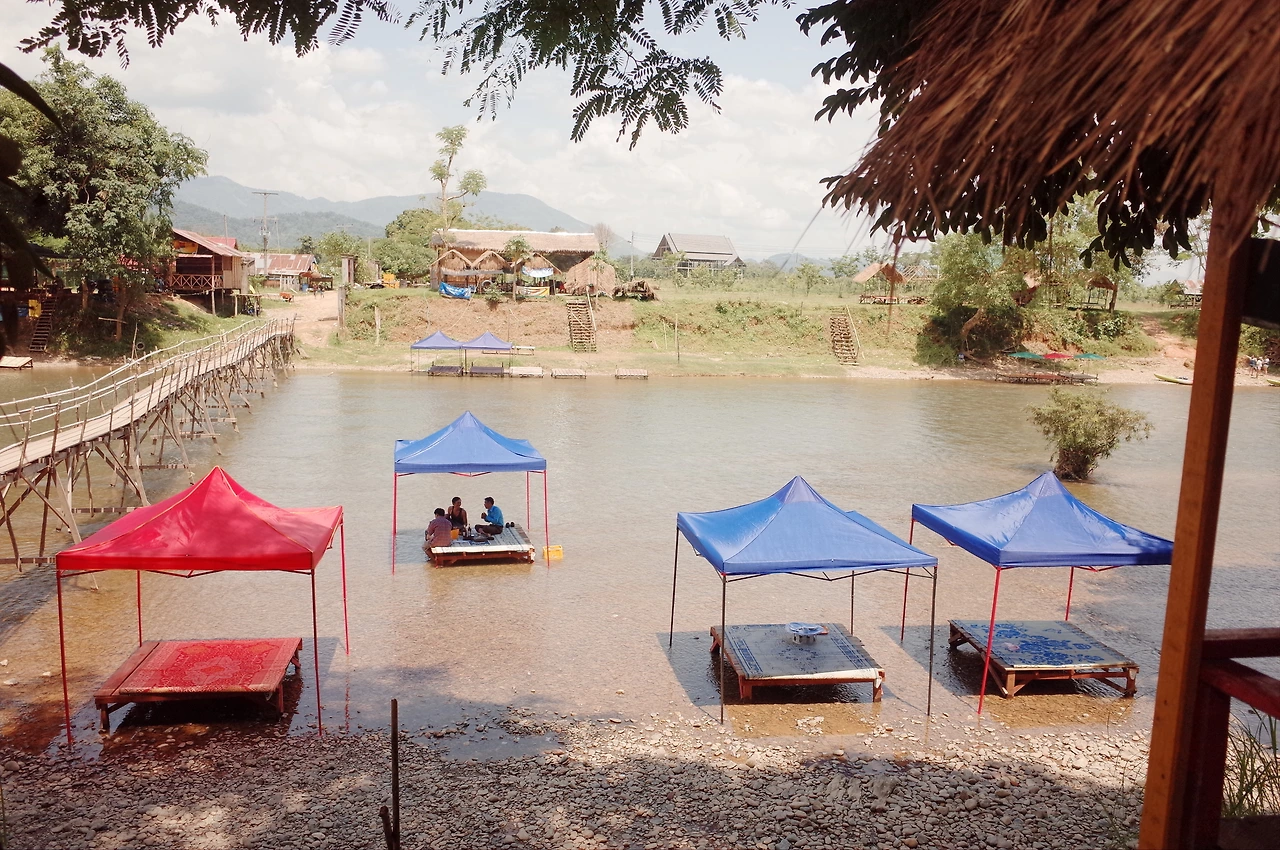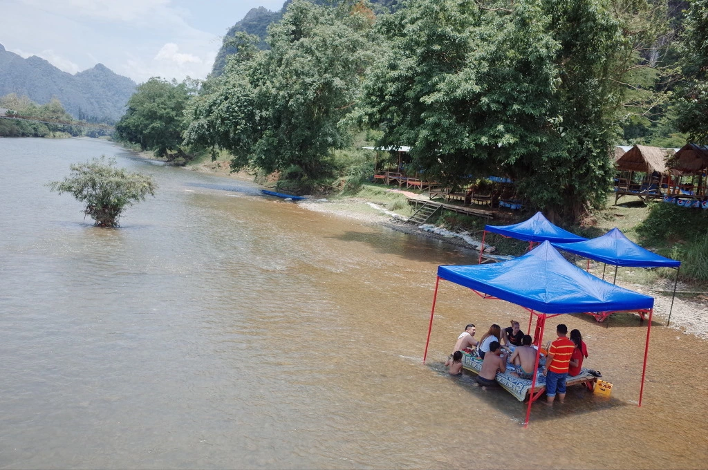 근데 이 식당은 왜 현지인만 오는 거지? 관광객들도 오면 충분히 좋아할 거 같은데. 여기 말고도 좋은 곳이 많아서 그러려나. 건너편에 보니 어제 우리가 갔던 바가 바로 보인다. 튜브를 타고 있는 여행자들은 다 저기로 향한다. 여기는 음악을 현지 음악을 틀어서 여행자들을 유혹 못하는걸까. 정취 있고 더 좋은데 혼자 즐기자니 아쉽다.