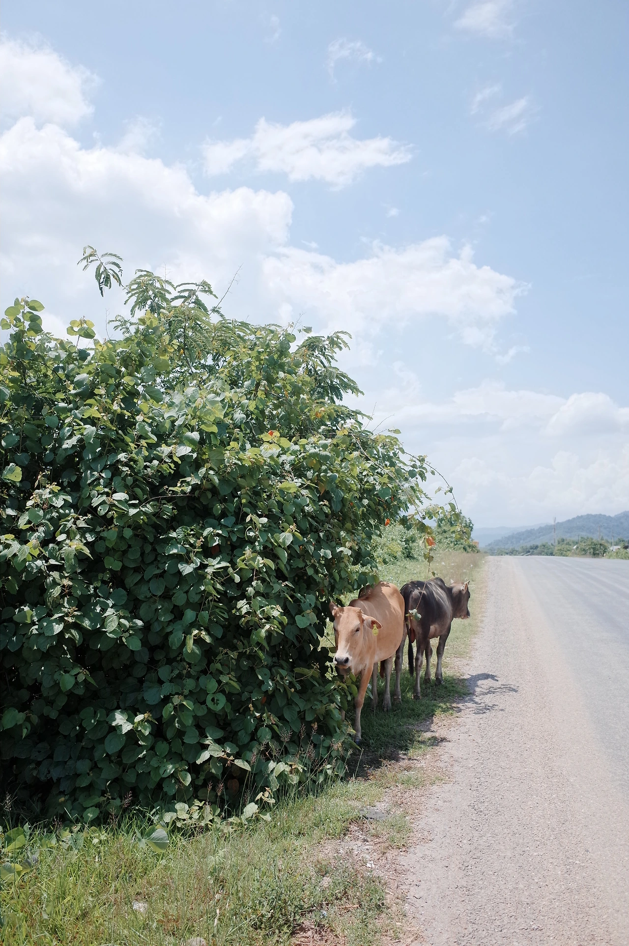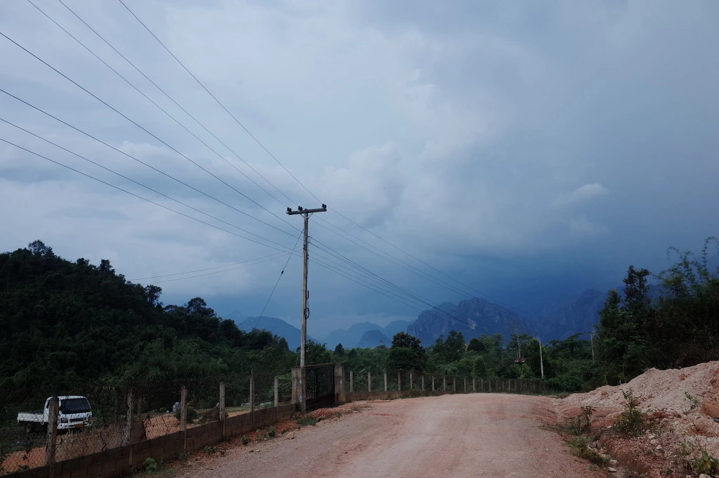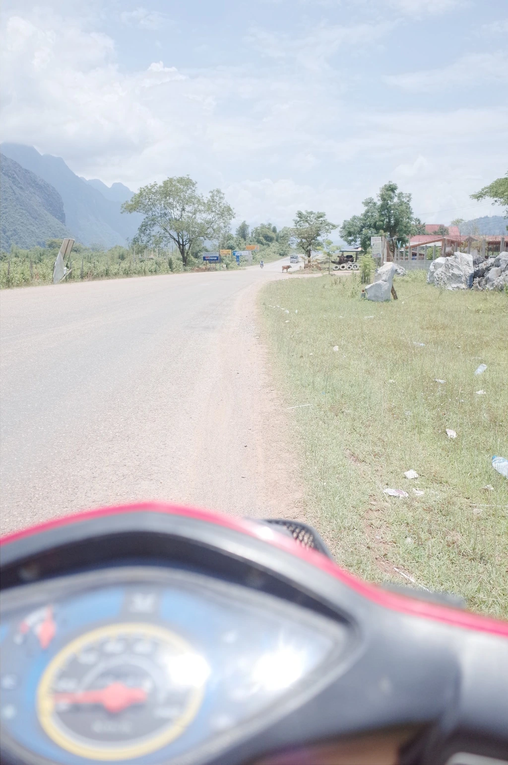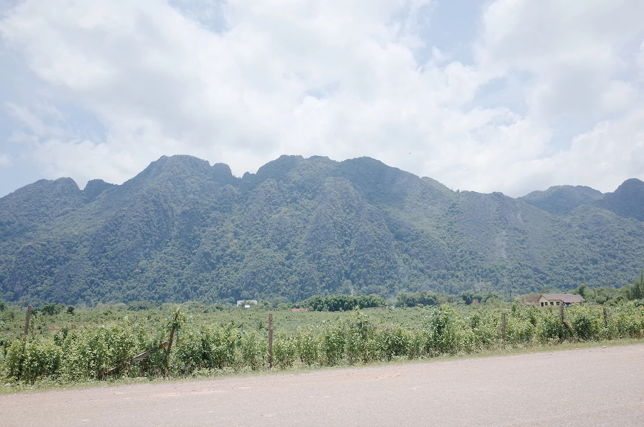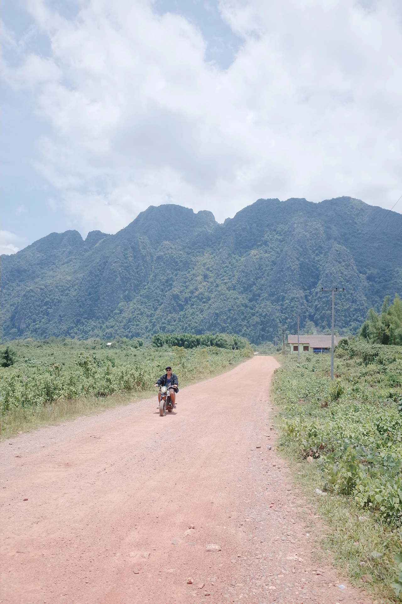 수영을 하게 될지도 모르니 수건 한 장도 챙기고 오토바이 시동을 걸어 오늘의 드라이브를 시작한다. 시작은 사장님이 일러주신 루앙프라방으로 향하는 길로 달려본다. 미얀마에서는 수동 오토바이가 익숙하지 않아서 드라이브를 즐기기 힘들었는데 이제는 익숙해져서 그런지 경치도 충분히 즐기면서 달린다. 방비엥의 산은 정말 눈길이 자연스레 갈 정도로 너무 멋있다. 아름답다라는 표현보다는 멋있다는 말이 어울린다. 여성적인 산이 아닌 남성적인 무게감이 느껴진다.