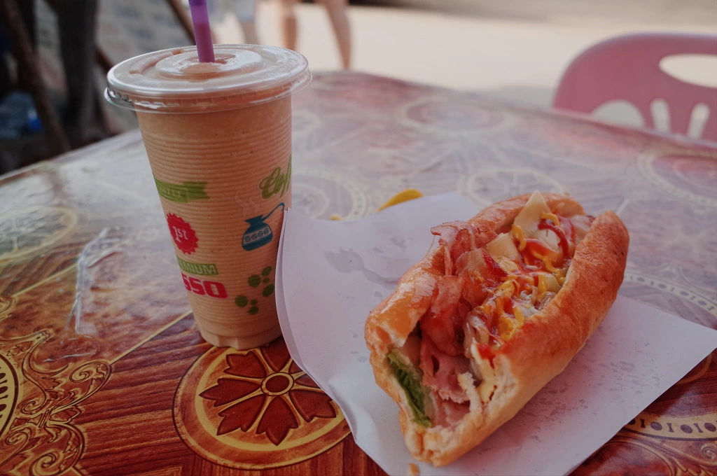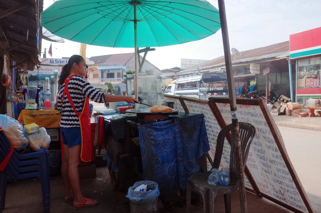 바이크를 빌리면 돈을 추가로 송금받을 때까지 쓸 수 있는 돈이 대략 4만킵 정도다. 아침을 먹기에는 충분하다. 돌아다니다 이곳에 굉장히 많이 보이는 바게트 샌드위치 집에 자리를 잡는다. 라오스가 예전에 프랑스 식민지였어서 그런지 바게트가 정말 많이 눈에 띈다. 어찌 보면 다른 동남아와 구별 짓는 가장 큰 특징 중에 하나가 바게트 아닐까 싶다.