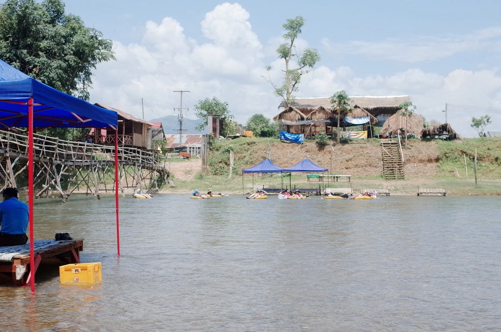평상에 앉아서 식사를 하고 있는데 튜브를 탄 여행자들이 우리 앞을 천천히 지나간다. 서양인도 지나가고 한국인도 지나간다. 내 쪽으로 손을 흔들길래 나도 무심코 흔들어준다. 어? 이거 내가 현지인인줄 알고 있는걸까? 옷도 벗은 상태라 충분히 그럴 듯하다. 장난기가 생겨서 해맑게 웃으며 손을 더 크게 더 열심히 흔들어준다.