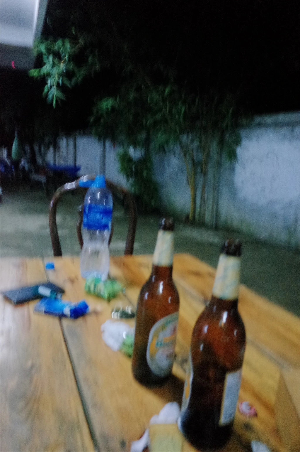 앞에 다른 평상에 있는 현지인 분들이 나에게 맥주를 권한다. 얼음이 동동 띄워진 맥주를 보니 유혹이 엄청나다. 하지만 오토바이가 있기에 거절한다.