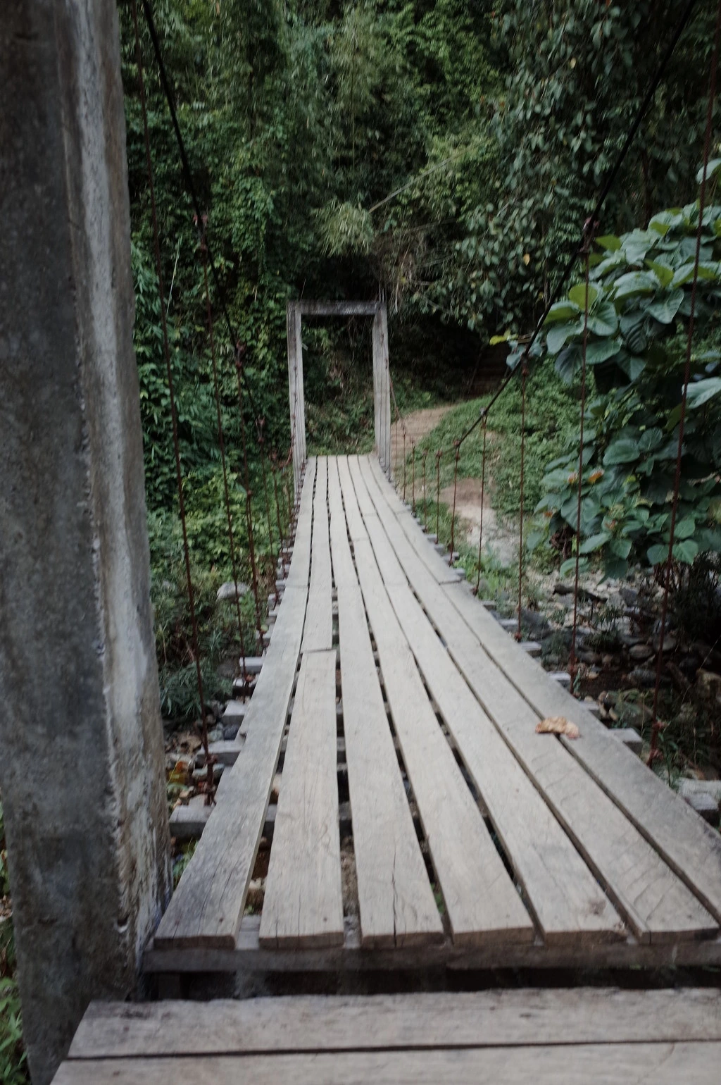 담고 싶은 풍경이 나타나면 중간중간에 서서 사진을 찍으며 시원하게 달린다. 아 멋지다. 한 30분을 달리다가 그냥 이유 없이 산 쪽으로 나 있는 작은 길로 방향을 틀어본다. 비포장 도로를 조심스레 달려서 안쪽으로 들어오니 냇가가 나타나며 시원한 바람이 느껴진다. 나무로 만든 다리가 보이고 건너편에는 몸을 물에 담그고 식사를 하는 현지인들이 보인다. 아무 생각 없이 왔는데 꽤 괜찮아보인다.