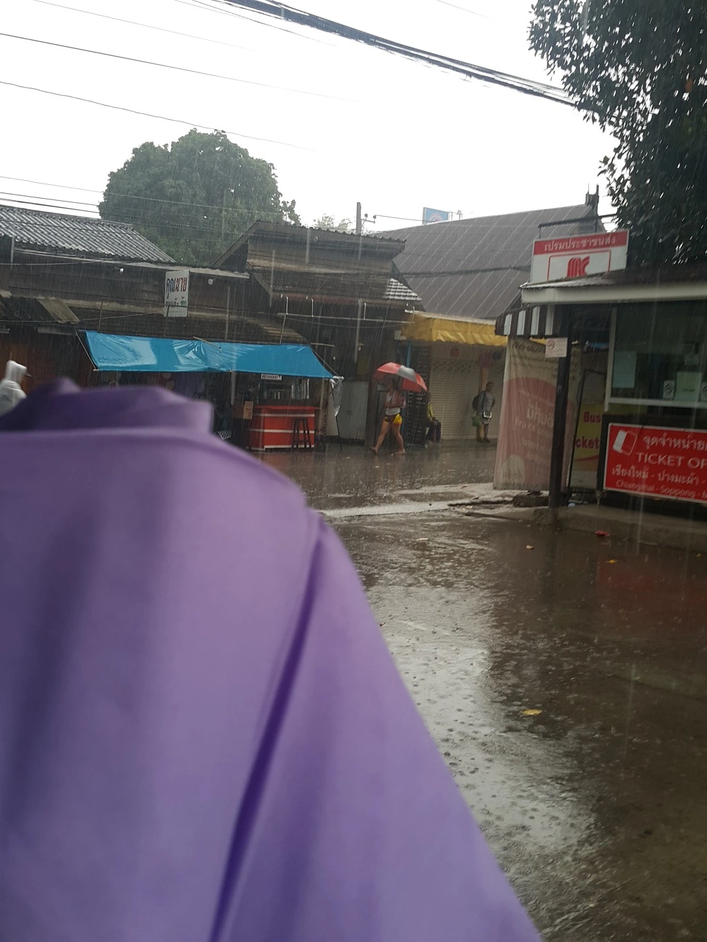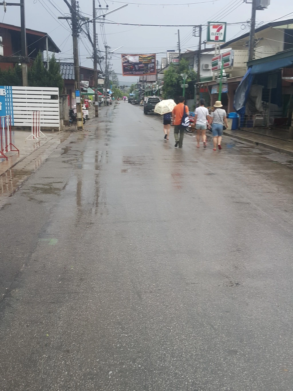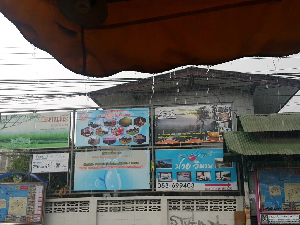 태국의 우기란 이런 거구나. 처마 밑에 있는데 위에가 갑자기 구멍이 뚫리며 물벼락을 맞는다. 아 빠이에서의 좋은 첫인상이군. 뭐 이런 이벤트 정도는 있어줘야 오히려 기분이 좋다.