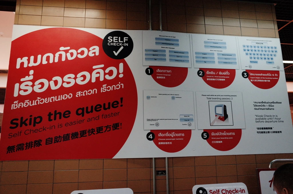 셀프 체크인은 의외로 매우 간단하다. 그냥 예약번호를 넣으면 알아서 항공권이 나오고 가방 부칠 게 있는 경우 버튼을 누르면 가방에 붙이는 스티커도 같이 나온다. 난 실수로 가방 부치는 것까지 뽑긴 했지만 그냥 주머니에 슬그머니 숨겨버린다.