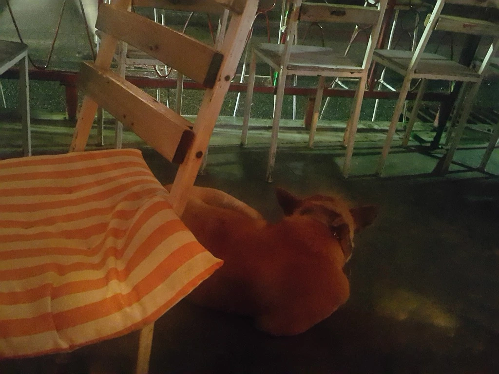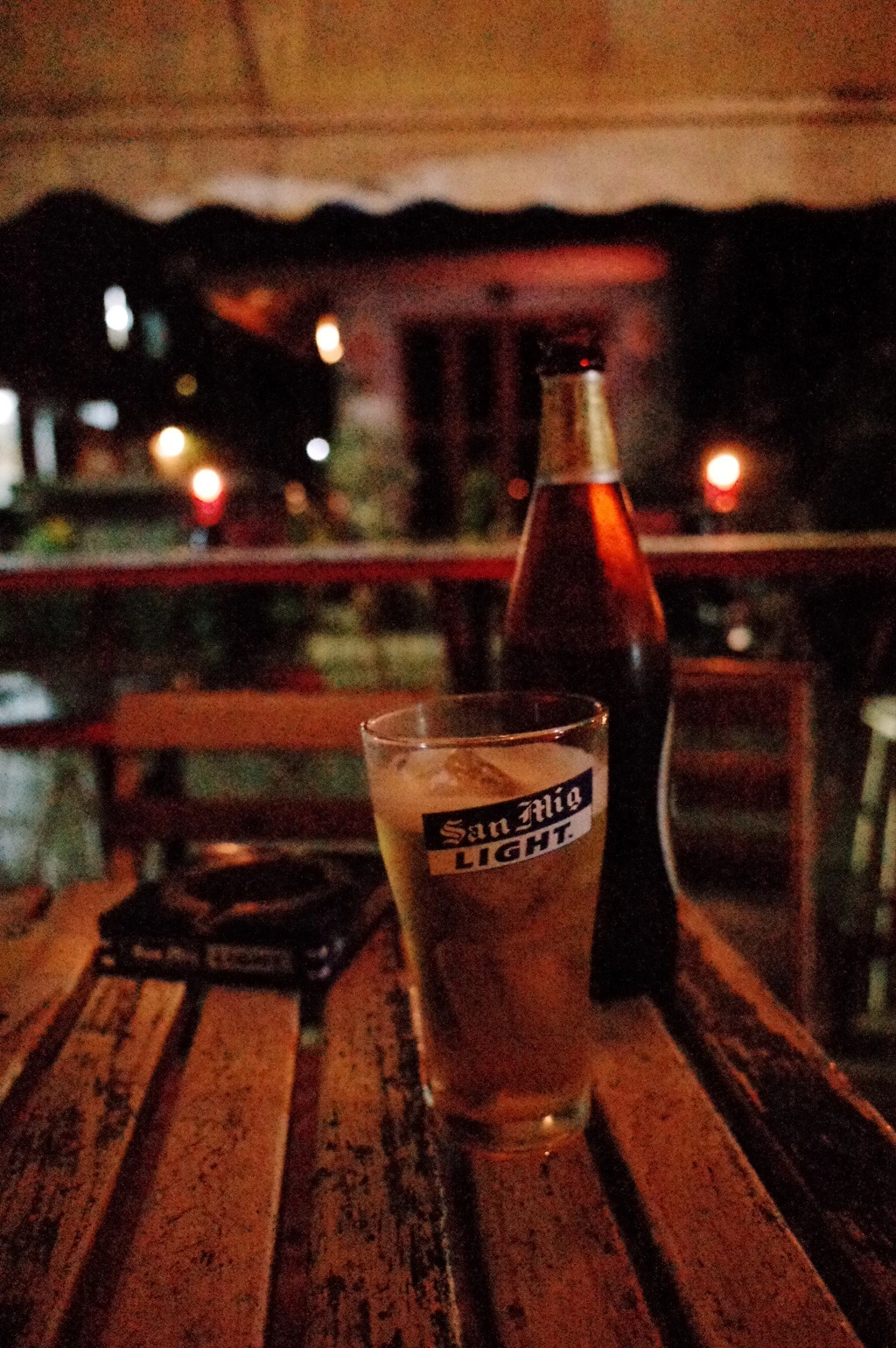 저녁을 먹고 나와서 바로 옆 바로 옮긴다. 일찍 들어가서 잘려고 했는데 뭔가 비 오는 분위기에 취해서 한 잔 먹고 가기로 했다. 여기 분위기 마음에 든다. 숙소 바로 앞에 식당, 그 바로 옆에 바가 있는 것도 마음에 들고, 바에 누워있는 세월아 네월아 하는 개도 마음에 든다. 빠이 오기 잘했다는 생각이 든다.