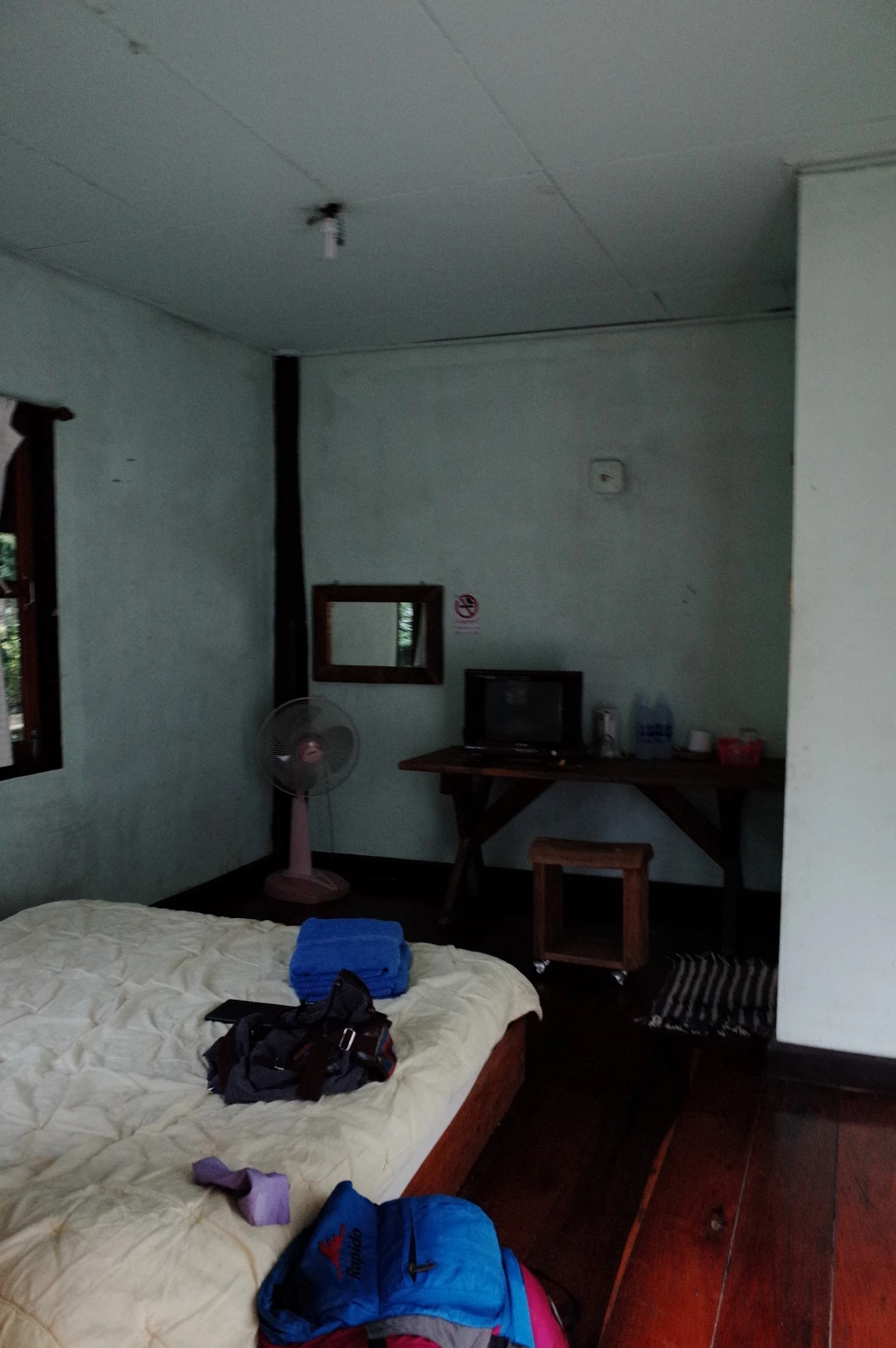 한 30분을 걸어갔나. 외진 곳에 배가 꽤나 나온 소녀가 누워있는 것이 눈에 들어온다. 내가 지나가니 살짝 인사를 걸길래 나도 인사를 한다. 무심코 지나치다가 뭔가 이끌려서 다시 돌아와서 방 있냐고 물어본다. 이런 질문을 한 사람이 워낙 오랜만인지 당황하더니 에어컨 방은 500바트, 그리고 선풍기 방은 400바트라고 더듬더듬 얘기한다. 생각보다 비싸다. 딸이 나랑 얘기하는걸 보고 실제 사장인듯한 어머니가 나오다가 멈춰서서 딸을 기특하게 쳐다본다.