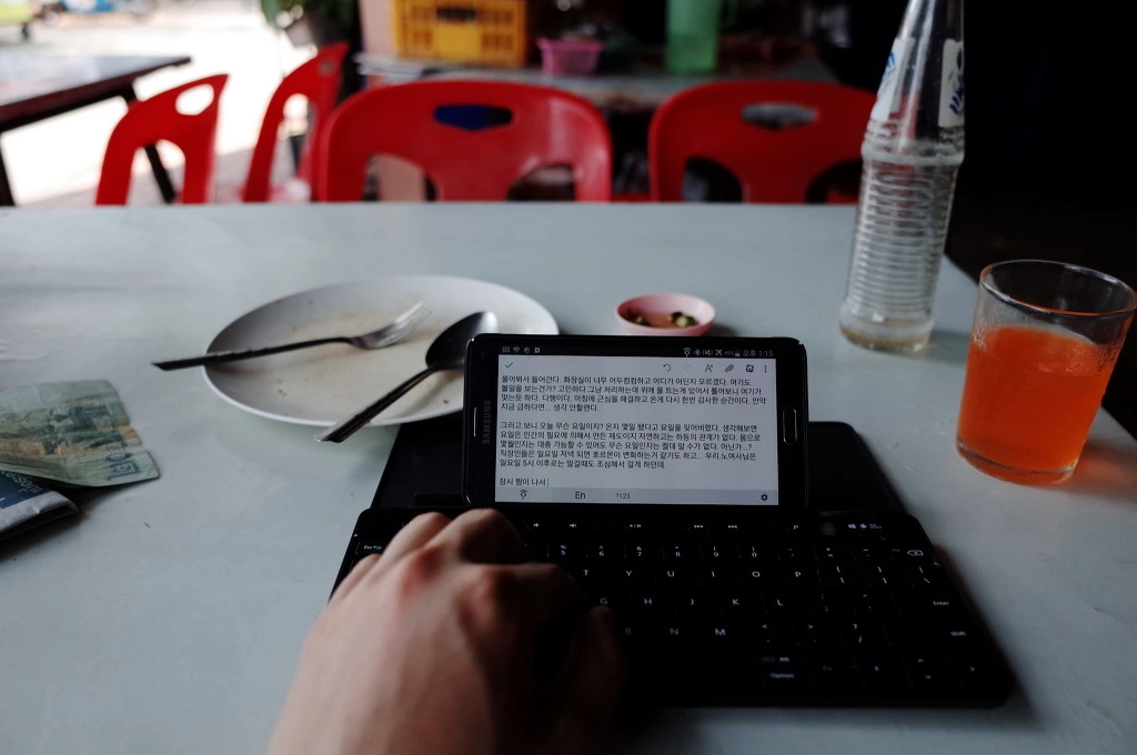 잠시 짬이 나서 키보드를 펴고 글을 쓴다. 이렇게 5분씩 쓰는 게 항상 그때 감정을 잘 드러내는 것 같다. 그러고 보면 여행 다니면서 글쓰기는 정말 잘한 거 같다. 혼자 있을 때 심심하지 않고, 그때 그때 감정을 담을 수 있고, 생각도 정리할 수 있으니 일석삼조이다. 쓰다 보니 시간이 금방 간다. 10분 전까지 오라고 했으니 ㅇ;ㅈ[ 슬슬 일어나야 할 때이다.