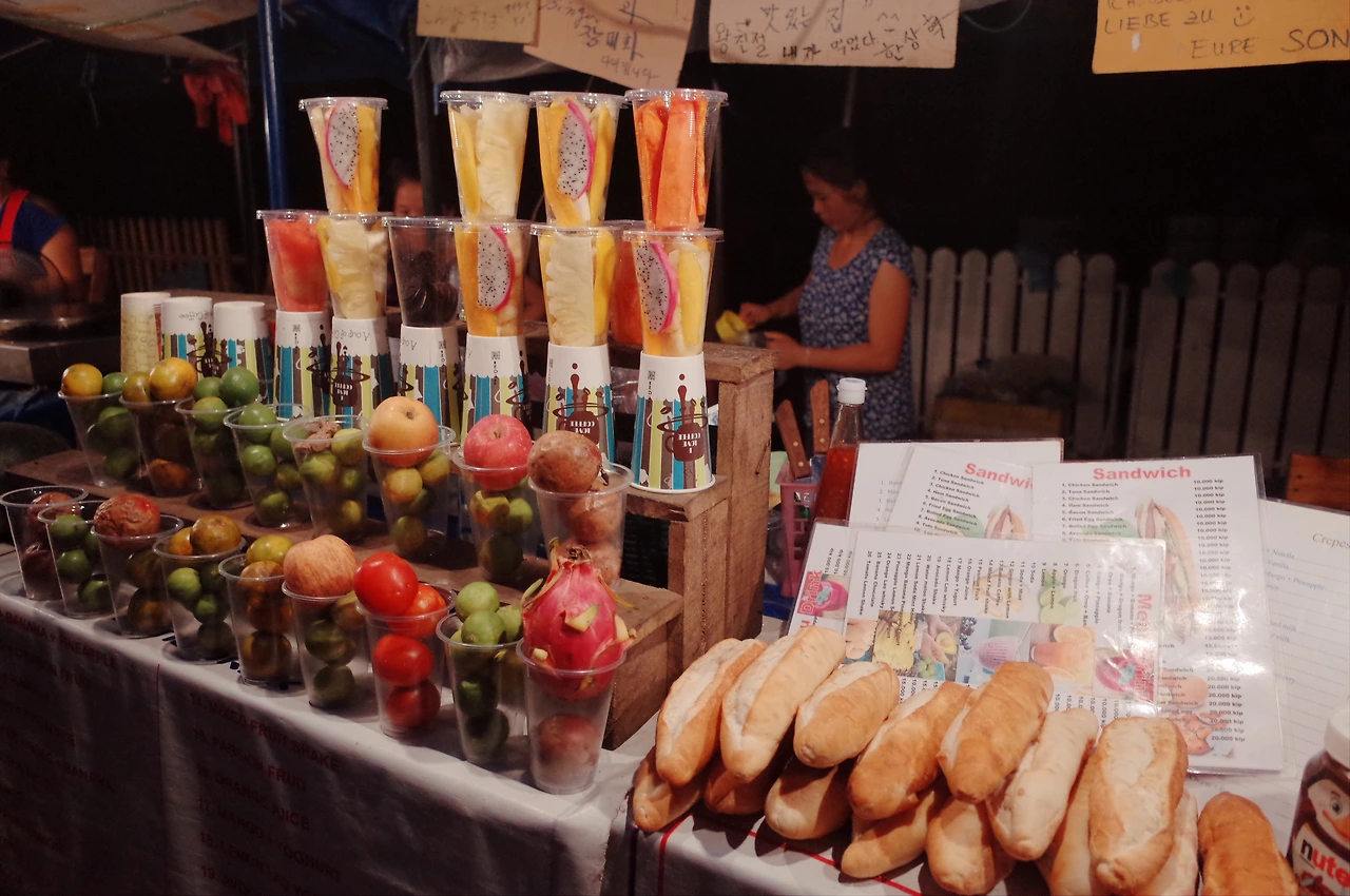 처음에 보자마자 시장처럼 보였던 곳이 있는데 거기부터 가보니 또 바게트 샌드위치다. 여기도냐. 방비엥에서 수도 없이 봤고 아침에 이미 하나 먹고 왔기에 오늘은 패스한다. 메인 길을 다녀보는데 이곳은 현지 현지 식당보다는 유럽음식점이 더 많다. 게다가 가격도 꽤나 비싸다. 이곳은 그냥 내일 떠나야 하려나.