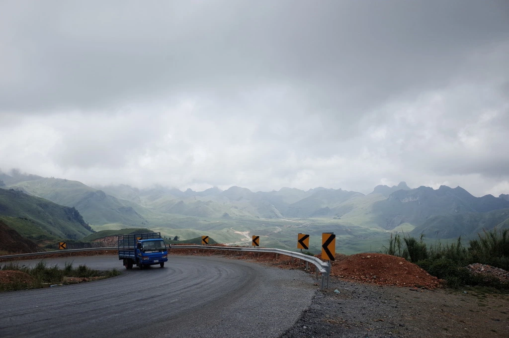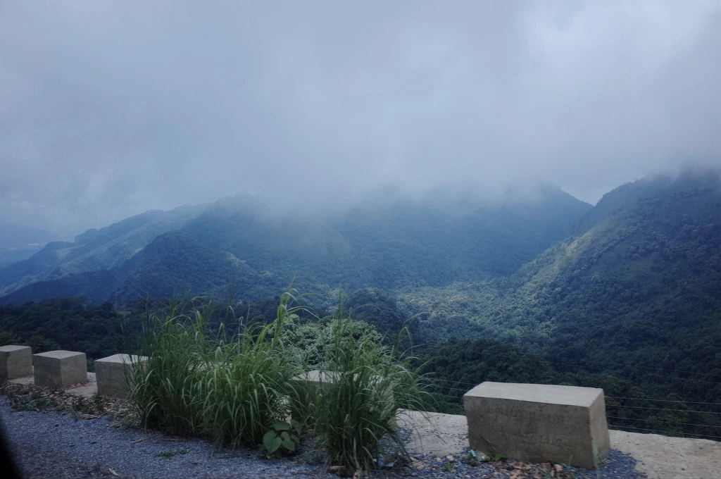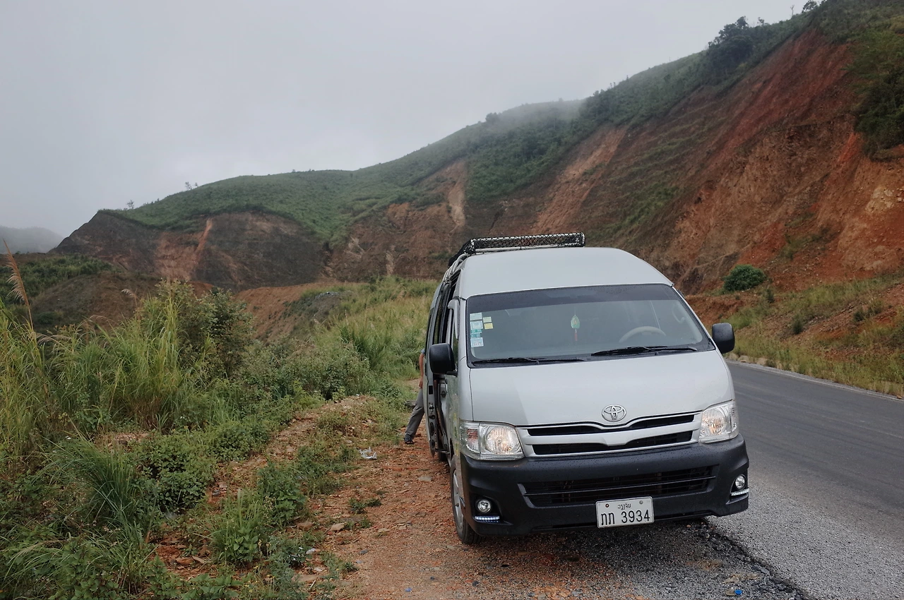 산꼭대기에 오르더니 차를 잠시 세우신다. 이번에는 또 뭐지? 갑자기 "포토포토!"라고 외치신다. 이런 포토타임 서비스까지 있다니 나름 낭만적인 이동이다. 다 같이 내려서 사진을 찍는다. 구름에 반쯤 가려진 라오스의 자연은 상상할 수 있는 만큼 웅장하고 멋있다.