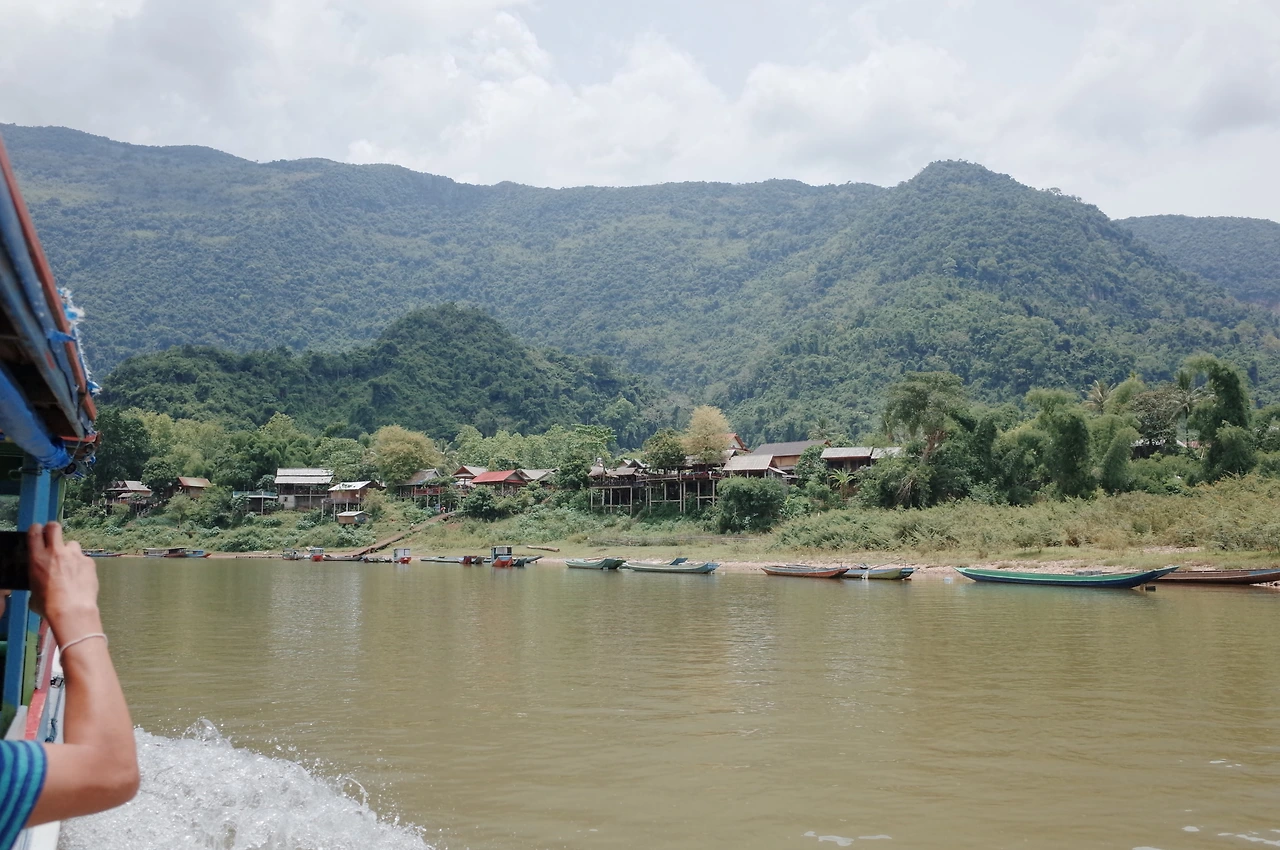 한 시간 정도 우강을 따라 가며 라오스의 멋진 전경을 제대로 한번 경험한다. 사방에서 물소들이 강물의 서늘함에 의존하여 더위를 식히고 있으며 배는 생각보다 강한 급류를 만나 엔진의 힘을 빌어 역행하며 역동적으로 달린다. 하지만 배 위에 앉아있는 나는 평화롭다. 스치는 바람과 모토소리 이면에서 들리는 자연의 소리가 마음을 평온하게 가라앉힌다.