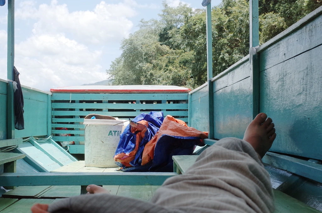 어디선가 배가 멈추길래 잠에서 깬다. 잠시 잠들었었나 보다. 아까 같이 탔던 학생이 여기서 내린다. 내리면서 돈 내는걸 보니 30,000킵이다. 현지인들에게 저정도를 받는다면 처음부터 끝까지 10만킵이나 15만킵이 그렇게까지 비싼 건 아니지 싶다.