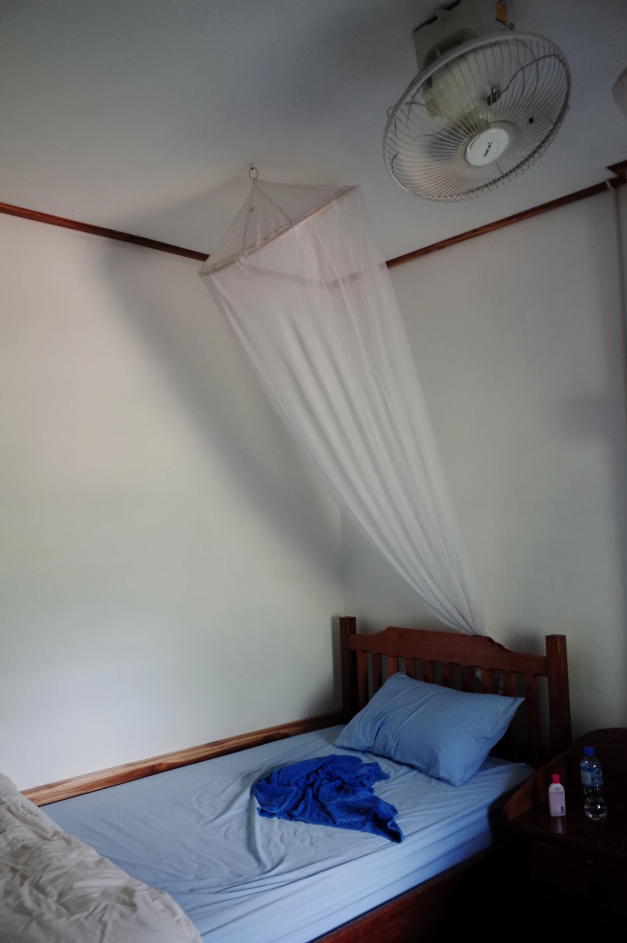 주인이 안보여서 불러본다. 여사장님이 나오길래 방값을 물어보니 3만킵이다. 아 싸다. 시설은 당연히 좋지 않겠다. 화장실도 별도란다. 방을 한번 보자고 한다. 올라가 보니 예상한 수준의 시설이다. 어쩔까? 고민을 잠시 하다 그냥 머물기로 한다. 어차피 내일 일찍 베트남으로 떠날 텐데 좋은 숙소는 그다지 필요 없다.