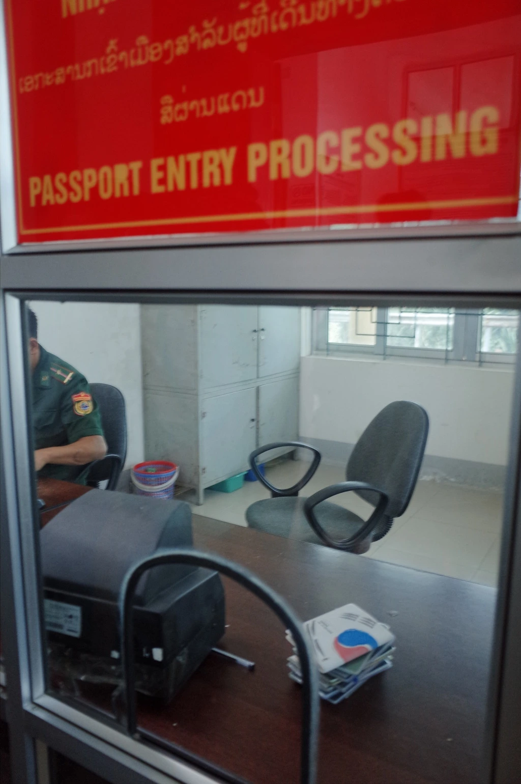 내려서 보니 깔끔한 건물이 하나 있고, 한쪽에 사람들이 모여있다. 가까이 가보니 여기가 Passport Control인 거 같다. 다른 사람들 사이에 껴서 나도 여권을 제출해놓는다. 어떤 사람들은 사진도 가지고 온 게 비자가 필요한가 싶다. 근데 베트남하고 라오스 사람들 밖에 없는 것 같은데 비자가 필요할게 있으려나.
