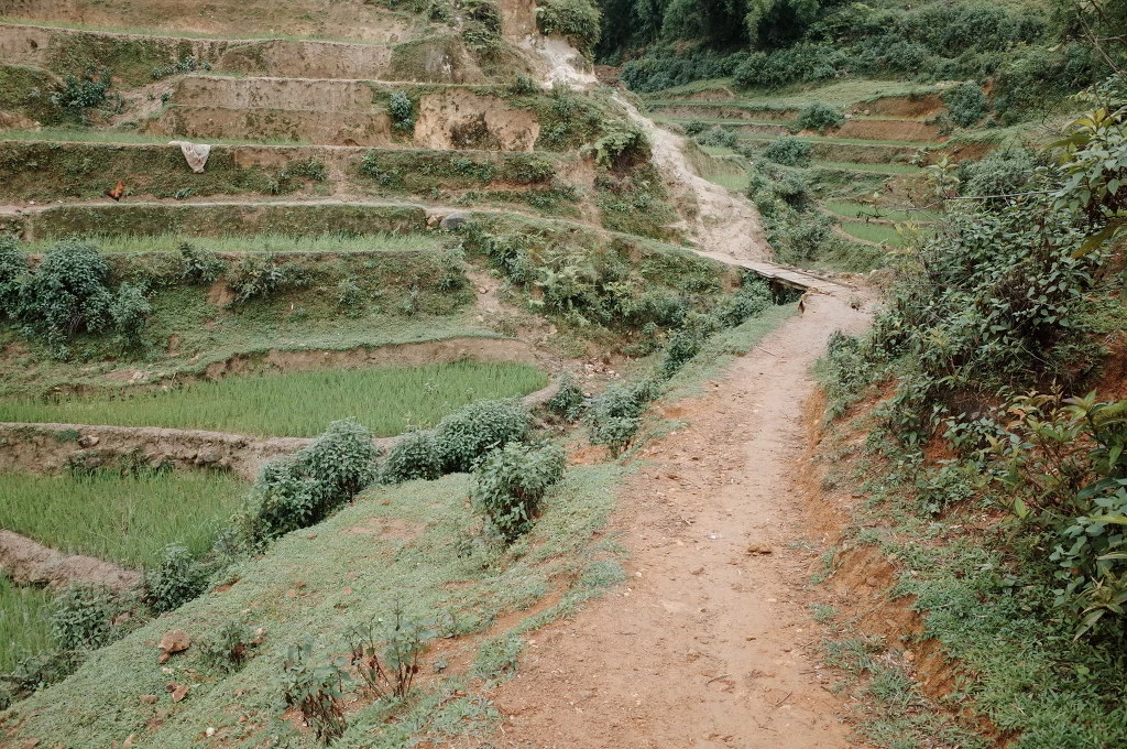 그쪽 길로 쭉 걸어가니 작은 건물이 보이며 여행자들이 쉬고 있는 게 눈에 들어온다. 선두그룹은 가버렸는지 여기서는 안 보인다. 대신 다른 여행자들이 있길래 혹시나 해서 여기서 또 가는 길을 아냐고 물어보니 자기들은 가이드 뒤통수만 멍하니 보면서 가고 있다며 수줍게 대단한다. 건물 안을 보니 현지인들이 보이기에 물어본다. 혹시 Y Linh Ho로 가는 길이 어디인가요?