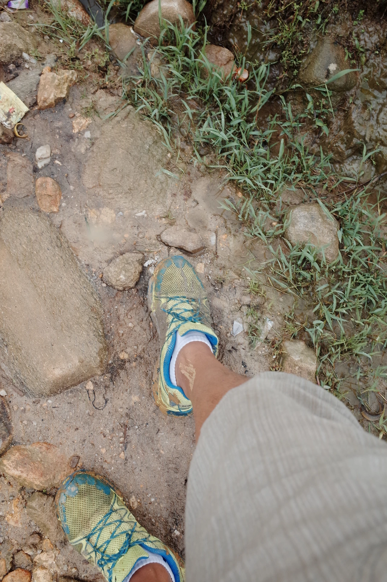 조금 내려가 보니 아까 그 남자의 말이 빈말이 아니었음을 깨닫는다. 어제 비가 와서 그런지 바닥이 정말 질퍽하다. 앞에 가는 어떤 아주머니는 결국 혼자서는 못 내려가서 가이드 두 명이 옆에서 어깨를 부축하며 겨우 한 발짝씩 천천히 내려가고 있다. 바닥이 진짜 매우 미끄럽다. 쪼리 신고 오지 않은게 천만다행이다라는 생각이 든다. 지금 운동화가 이리 더러워 보여도 나름 노여사가 지난 생일 선물로 사준 방수까지 되는 트래킹화다. 물론 나도 노여사의 생일 선물로 색깔만 다른 같은 운동화를 사줬었다. 나는 보통 차를 타는 것보다 걷는 것을 좋아하다 보니 운동화가 일 년이면 거의 헤져버린다. 그래서 노여사가 그냥 일 년에 내 생일마다 한번씩 운동화를 선물로 준다. 선물 뭐 사줄지 고민 안 해도 돼서 좋지?