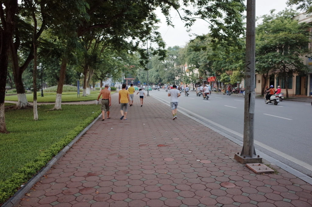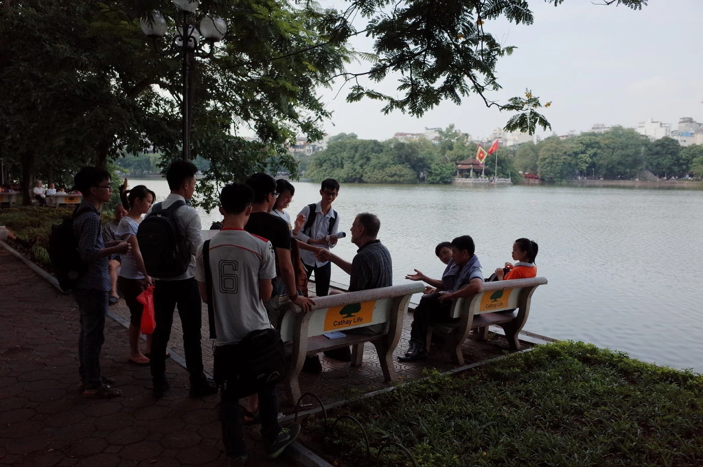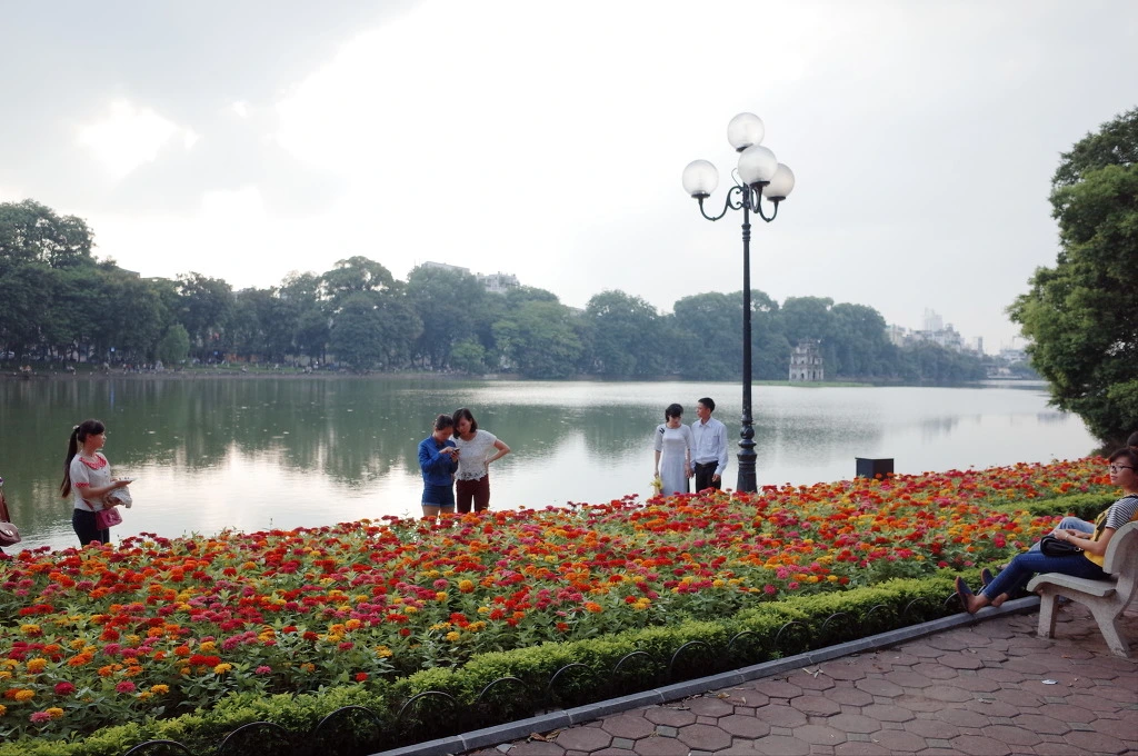 호수 한바퀴를 돌면서 베트남을 느낀다. 한쪽에서는 개를 데리고 남자 하나가 조깅을 하고 있고, 한 곳에서는 갓 결혼한듯한 신혼부부가 웨딩 사진을 찍고 있다. 물병을 세워놓고 링을 던져서 넣는 놀이를 하는 젊은 여인들도 보인다. 이곳에서만 볼 수 있는 광경으로는, 베트남의 젊은이들이 외국인이 있는 곳에서는 모두 삼삼오오 모여서 영어를 연습하는 모습이다. 외국인이 있는 곳에는 어김없이 그런 젊은이들이 모여있다. 하노이에 영어 잘하는 사람이 많은 이유를 알겠다. 하지만 아무도 나에게 말을 걸지는 않는다. 나한테 영어를 배우고 싶지는 않겠지. 그것보다 외국인이라고 생각이나 하려나?