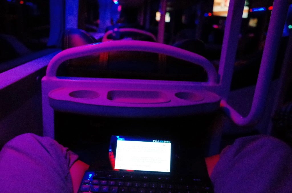 슬리핑 버스는 저번에 타고 온 버스보다 훨씬 고급이다. 들어가서 자리에 누워보니 다리도 쭉 펴지고, 화장실도 안에 있다. 심지어 와이파이도 있다. 물을 한병 사들고 와서 자리를 잡고 키보드를 핀다. 오늘 처음 글을 쓰는 거다. 이제 혼자가 되었으니 다시 글과 함께 여행을 시작해보자.