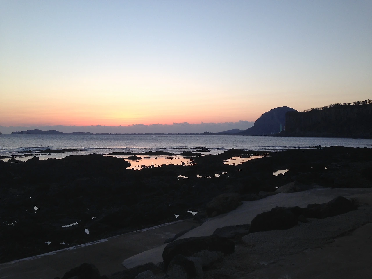 밖을 보니 그새 어두워지고, 해도 곧 질듯해서 일몰을 보러 밖으로 나간다. 가는 길에 보니 노을이 예쁘게 져있어서 기대를 품어본다. 이어폰을 끼고 노래를 들으며 나가보니 바람이 꽤나 쌀쌀하다. 옷깃을 다시 한번 여미고 바닷가로 간다. 일몰의 분위기가 다 좋은데 구름의 위치가 아쉽게도 에러다. 아니 왜 구름이 하필 저기 있단 말인가. 넌 굳이 꼭 거기 있어야 하겠냐. 이 곳을 떠날 때까지 대평리에서 일몰을 제대로 볼 수 있을지 모르겠다.