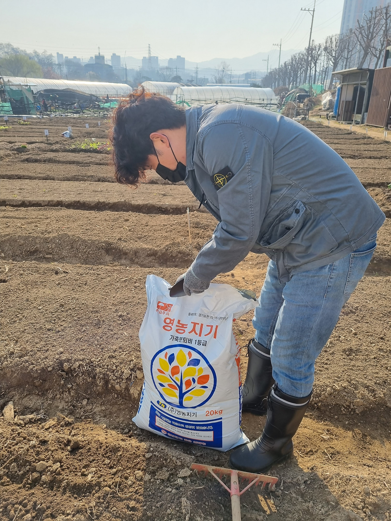 #6. 그래서 오늘은 잘 뿌리기 위한 준비를 하러갔다. 실제 텃밭의 크기가 얼마인지 체크하고 퇴비를 뿌리고 흙을 고르게 섞었다. 쓰레기나 돌뿌리는 걷어냈다. 급한 내 성격대로 라면 오늘 바로 모종, 씨앗을 심었어야 직성이 풀렸을텐데 하지만 퇴비를 뿌리고 나서 일주일 정도 후에 심는게 좋다던 책 속 가이드를 따라가본다.