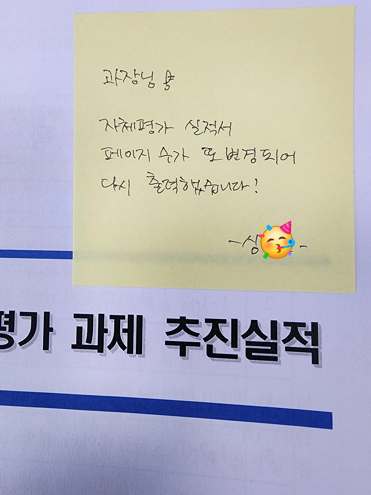 지난해 실적보고회 당시 서무님이 써준 쪽지입니다.