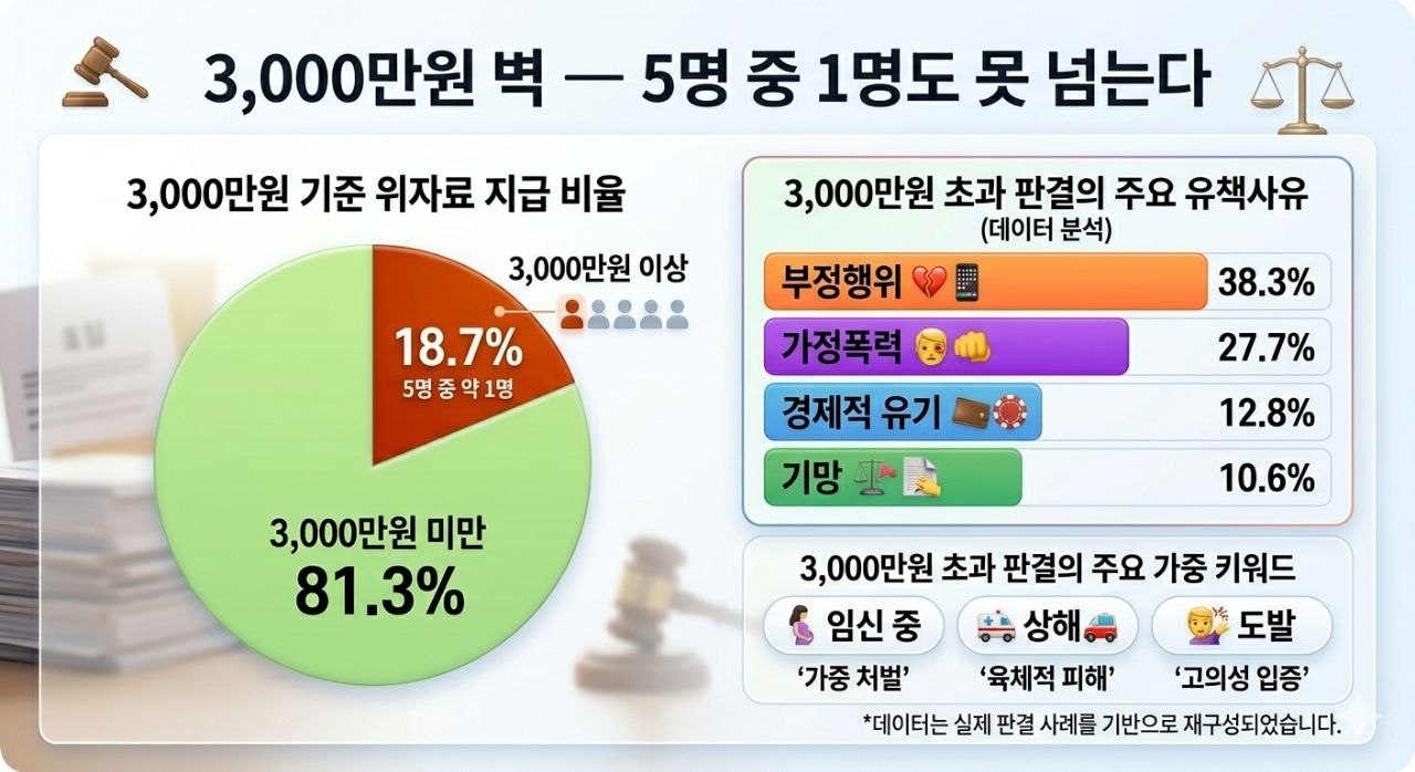 고가 판결의 공통분모: 부정행위(38%)와 가정폭력(28%)이 결합될 때 가장 많이 발생합니다.