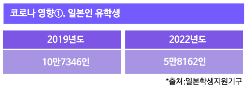특히 코로나의 영향으로 여행뿐 아니라 일본인의 유학생수에도 영향을 미쳤다.