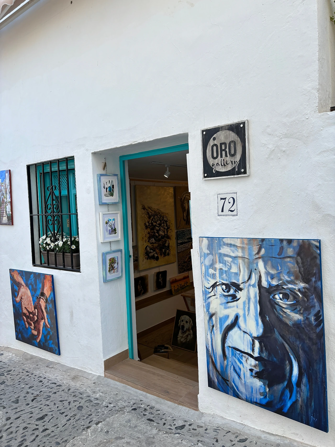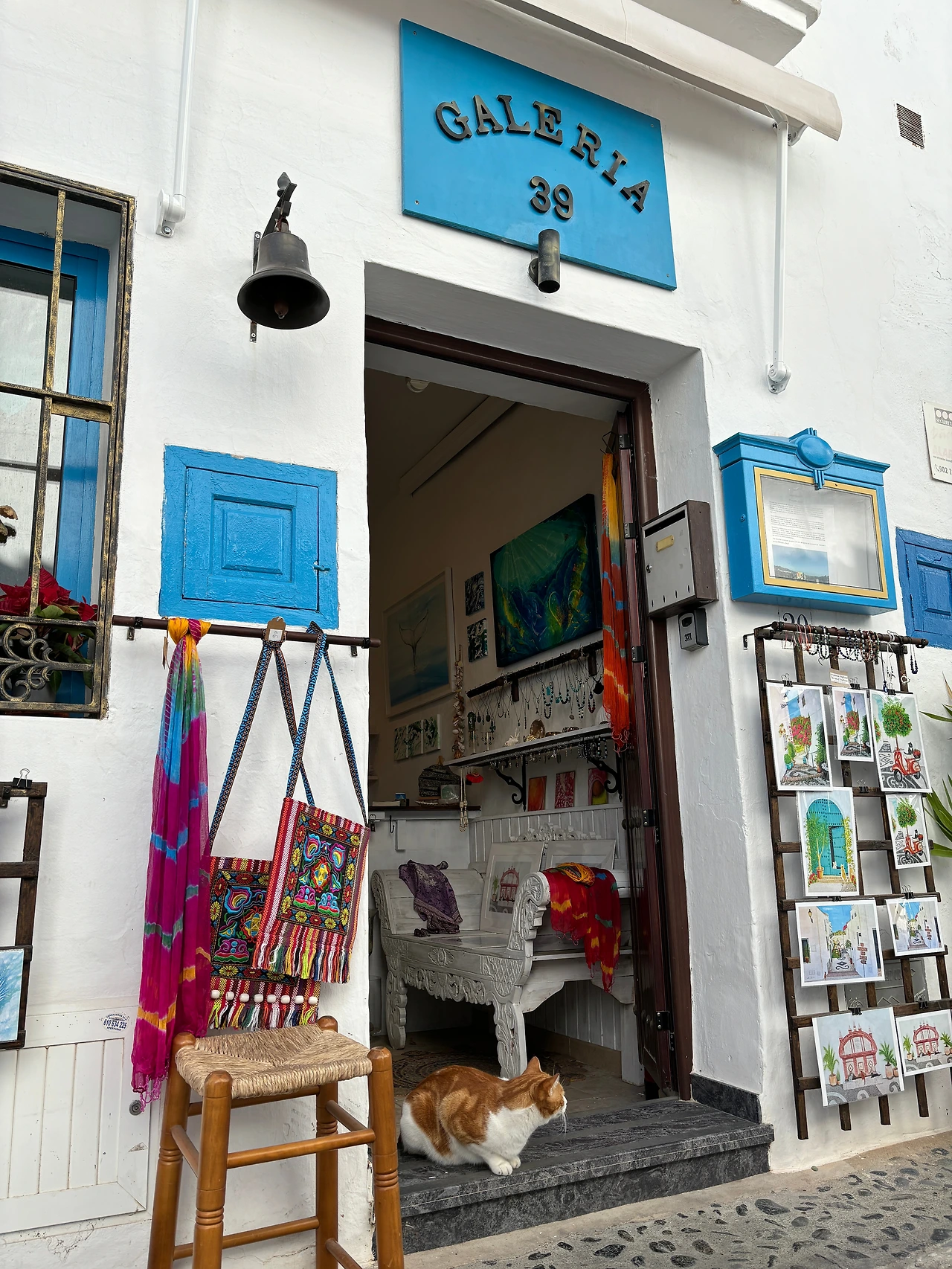 가볍게 커피를 마신 우리는 카페 뒤쪽에 산책하기 좋아 보이는 꼬불꼬불한 골목길로 발걸음을 옮겼다. 맛있다는 빵집을 구글 맵에서 찾았기 때문인데, 그냥 이 동네를 뜨기도 왠지 아쉬웠기 때문이기도 했다. 건물은 새하얗고 바닥은 회색과 흰색, 베이지색 자갈들로 기하학적인 무늬가 그려져 있었고, 길과 건물의 경계에는 푸른 나무와 꽃 화분들이 줄지어 있었다. 드문드문 나타나는 기념품가게에는 각기 색다른 엽서와 자석, 러그, 꿀, 가방, 직접 그린 그림 같은 것들이 걸려있었고, 가게 앞에는 꾸벅꾸벅 졸고 있는 고양이가 한 마리씩 있었다.