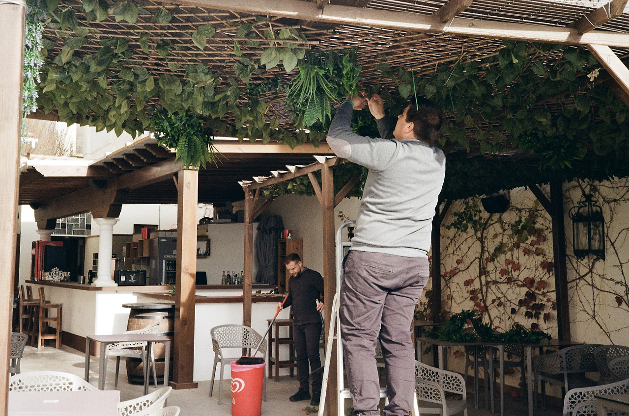 시에스타에도 쉬지 않고 카페 여기저기를 손보며 저녁 장사를 준비하고