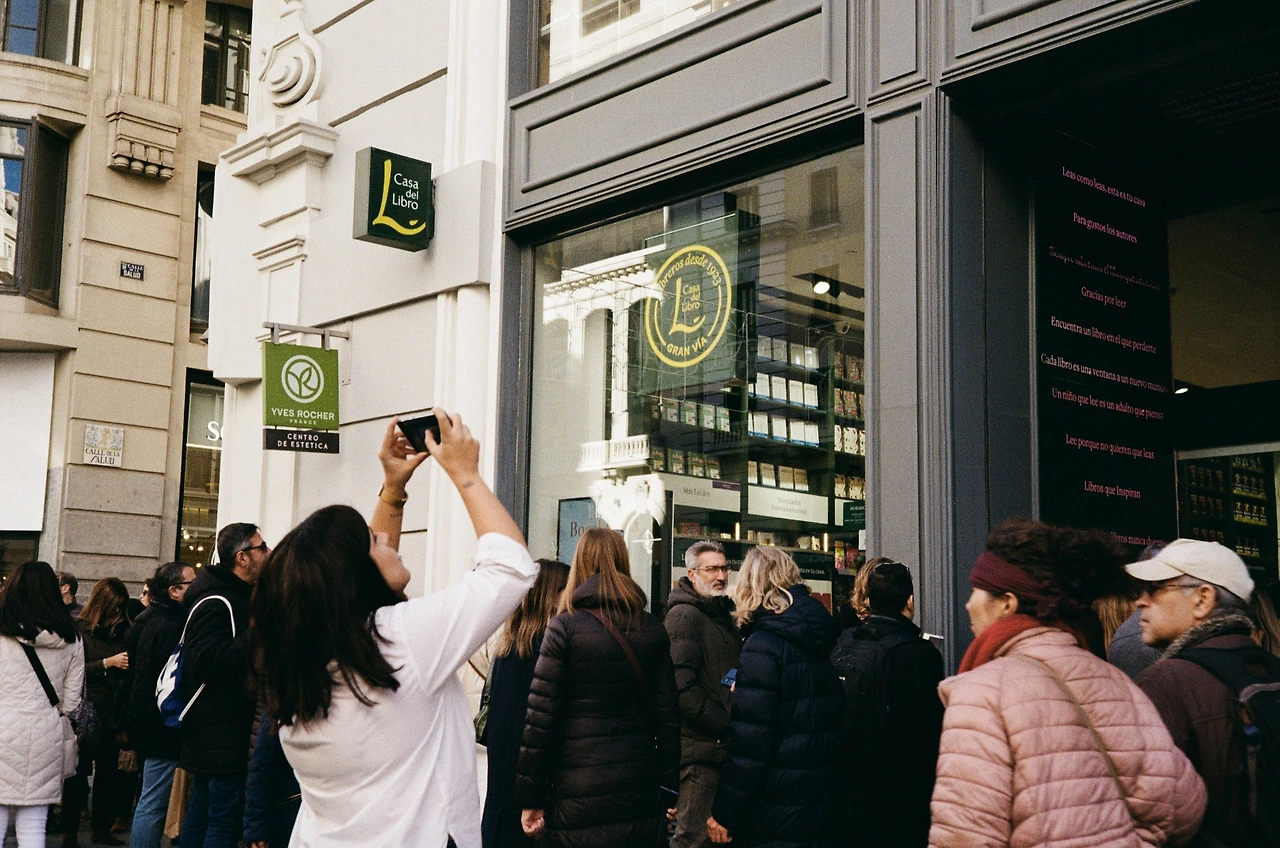 서점 건물을 빙 둘러가며 줄 서 있는 모습을 보니