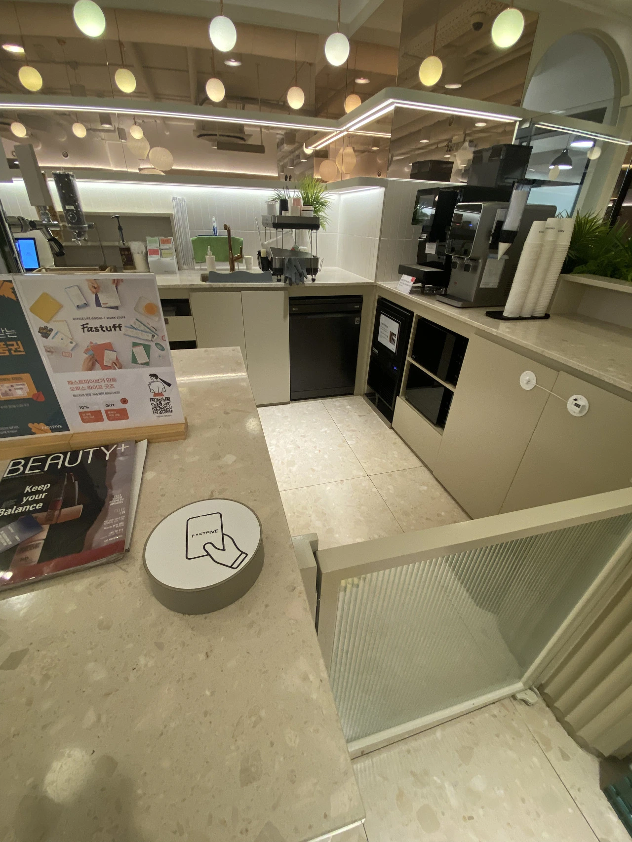 - 다만, 놀랍게도 커피 한 잔, 물 한 잔 마시러 가는데 출입할때 두 번이나 휴대폰 모바일키를 찍어야한다. 문제는 휴대폰을 자리에 두고오거나, 또는 손에 커피가 2잔이 들려있거나 하면 휴대폰 챙기는 일 자체가 귀찮게 된다.