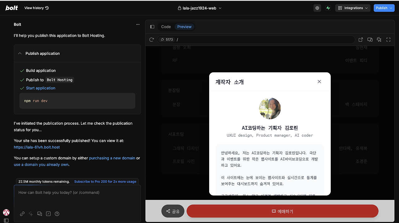 그리고 2025년 6월, 저는 Bolt.new(클로드 모델 기반의 바이브코딩 툴)을 드디어 만났습니다!