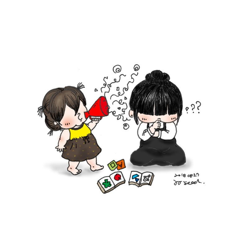 날이 갈수록 무슨 할말이 그리 많은지폭풍 옹알이를 쏟아내는 아이알아듣지 못하는 우리가 답답하지도 않은지수다스럽게도 혼자 끊임없이 외계어를 쏟아낸다.말소리 같으면서도 절대 알아들을 수 없는 풀 수 없는 듣기평가....;;사랑스런 목소리로 열심히 떠들고 있는 아이를 보고 있으면 무슨생각을하는 건지 무슨말을 하고있는건지너무 너무 궁금해서 통역해주는 기계라도 있었으면~
