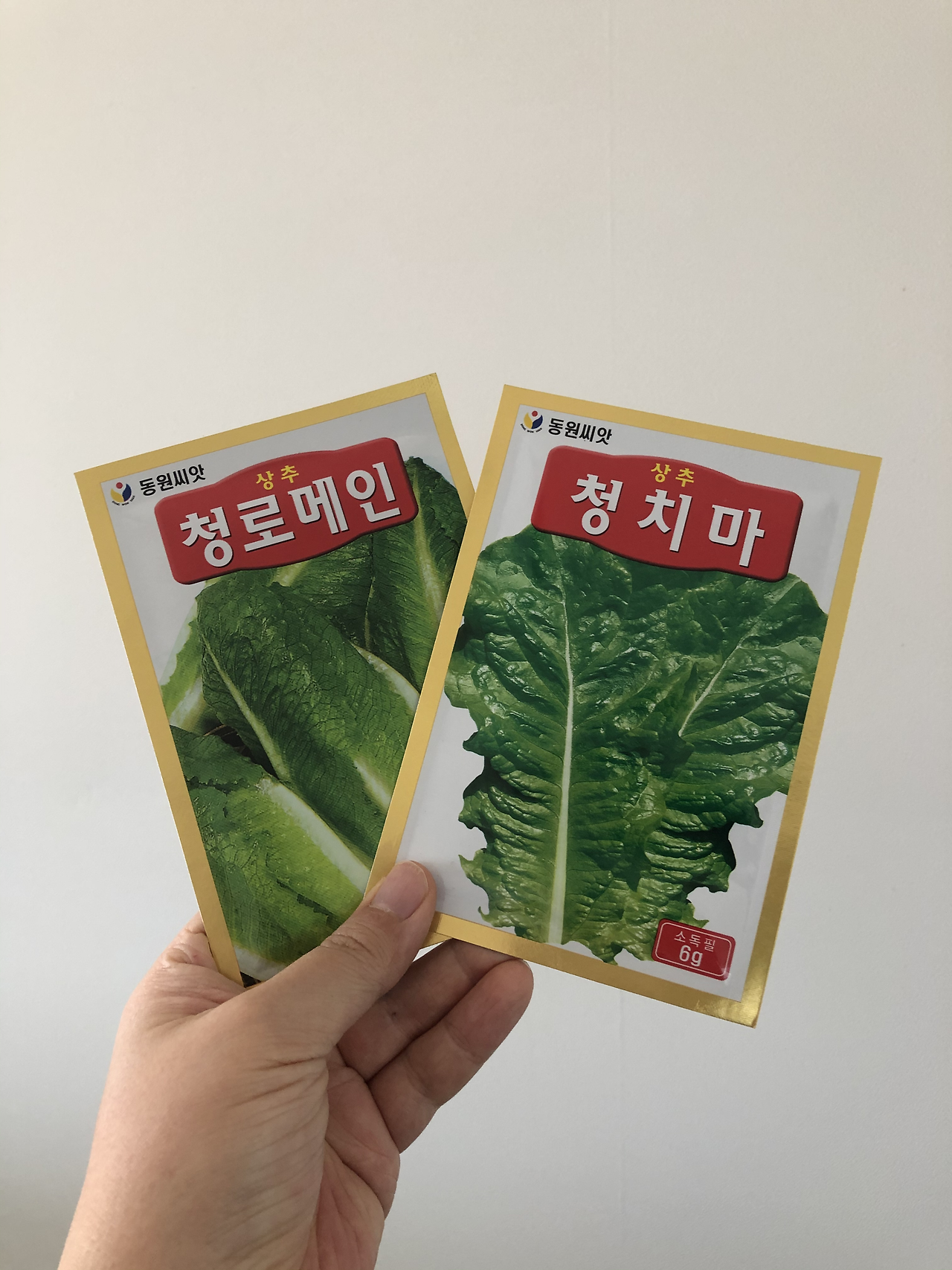 초록이 움트는 3월 말, 모종 가게에서 상추씨와 꽃씨를 구입했다. 부드럽게 먹기 좋은 청상추와 로메인이었다. 씨앗이 얼마나 날지 알 수 없어서 봉투의 1/3 정도를 텃밭에 흩뿌리고 살짝 덮었다. 대부분은 씨앗의 두 배 정도로 흙을 덮으라고 하는데, 상추씨는 흩날릴 정도로 작고 가늘어서 덮은 듯 만 듯 흙을 올렸다.