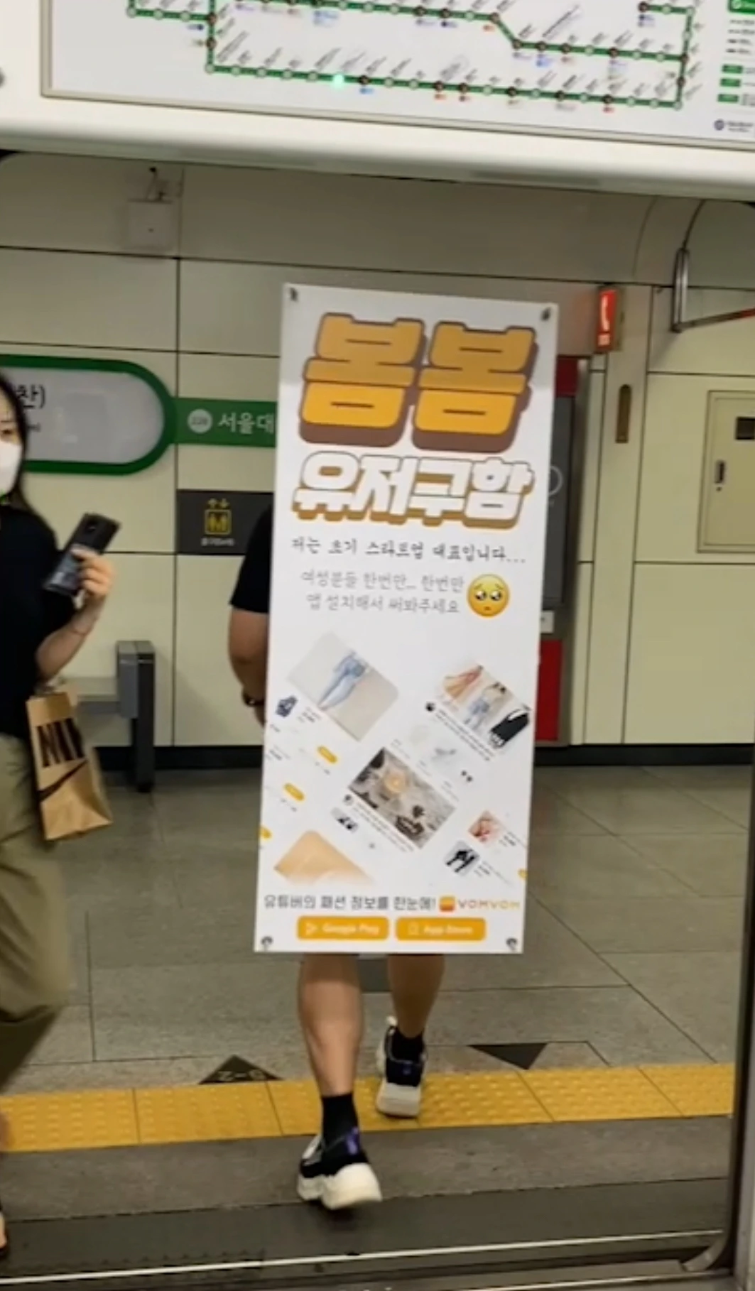 젊은 사람이 앱 홍보 배너를 등에 메고 번화가, 지하철 출퇴근 길에 걸어 다니면 일반적이지 않으니까 누군가 이것을 찍어 SNS에 업로드해 준다면 바이럴 될 수도 있지 않을까? 라는 막연한 생각이 있었습니다.