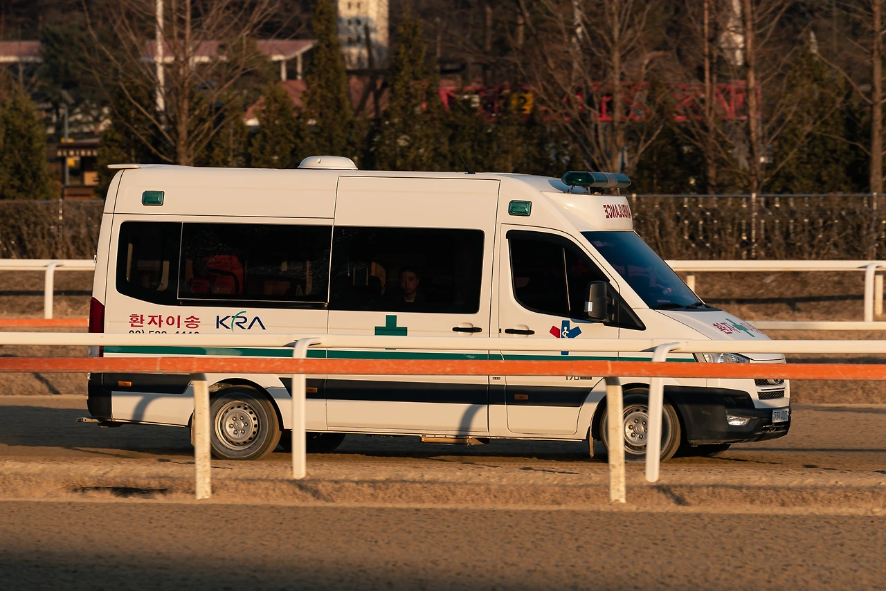 도로 위에서 사이렌을 울리며 급하게 병원으로 달리는 구급차는 흔하게 볼 수 있는 광경이다. 요란한 사이렌 소리만으로도 공포감이 드는데 얼마나 위급한 환자가 구급차에 타고 있을지 상상을 하게 된다. 나 역시 수십 번 구급차에 실려 갔었기에 언제든지 구급차를 탈 수 있다는 공포와 불안이 있다. 경마장의 새벽과 경주가 열리는 주말이면 구급차는 항시 대기에 들어간다. 경마장 사람들은 멋있고 매력적인 말과 함께 경주로를 달리지만, 구급차는 언제 부상을 입을지 모른 채 아슬아슬하게 달리는 우리를 따라 함께 달린다. 불안과 두려움, 안심이 공존하는 구급차. 없어서는 안 되겠지만 타고 싶지는 않다.