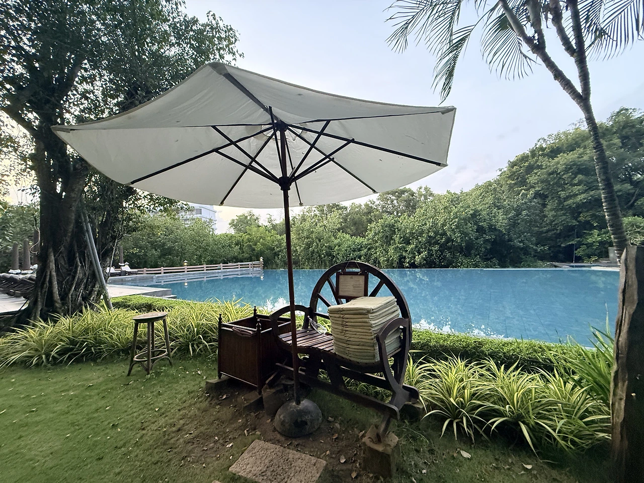 풀장의 수면이 잔잔히 빛을 비췄다.