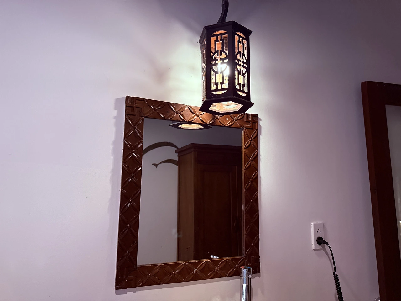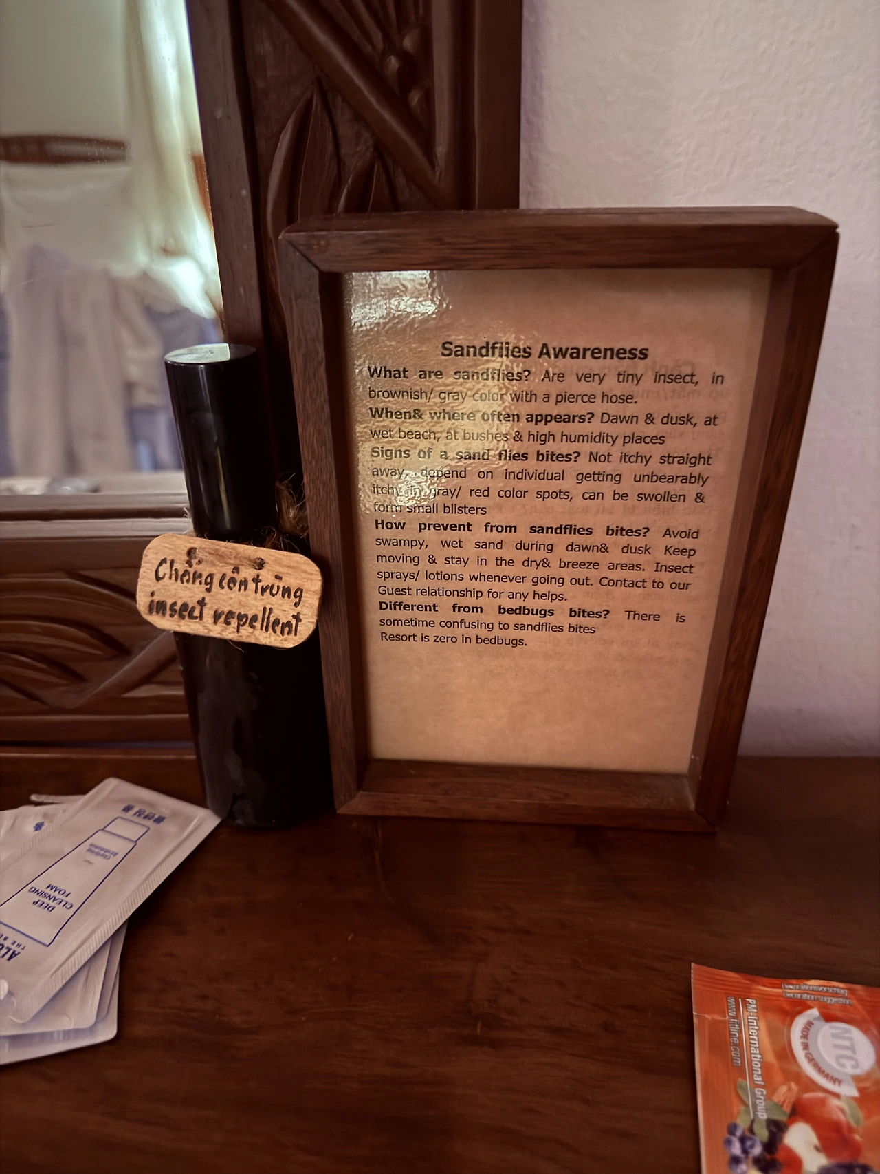 거울 옆에는 투명한 모기퇴치제가 놓여 있었다.