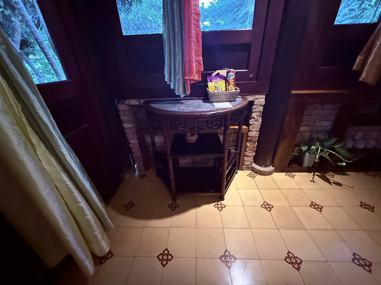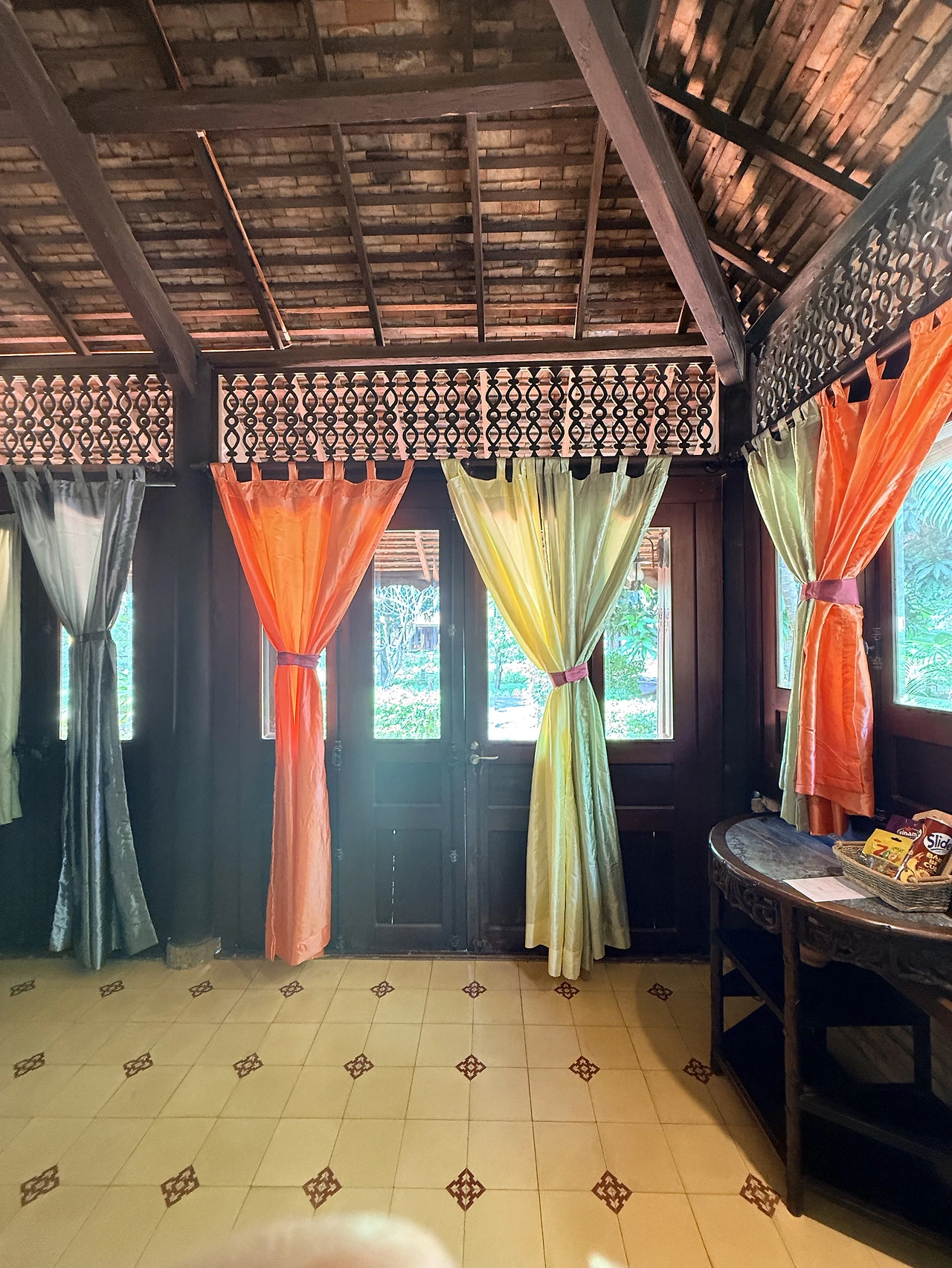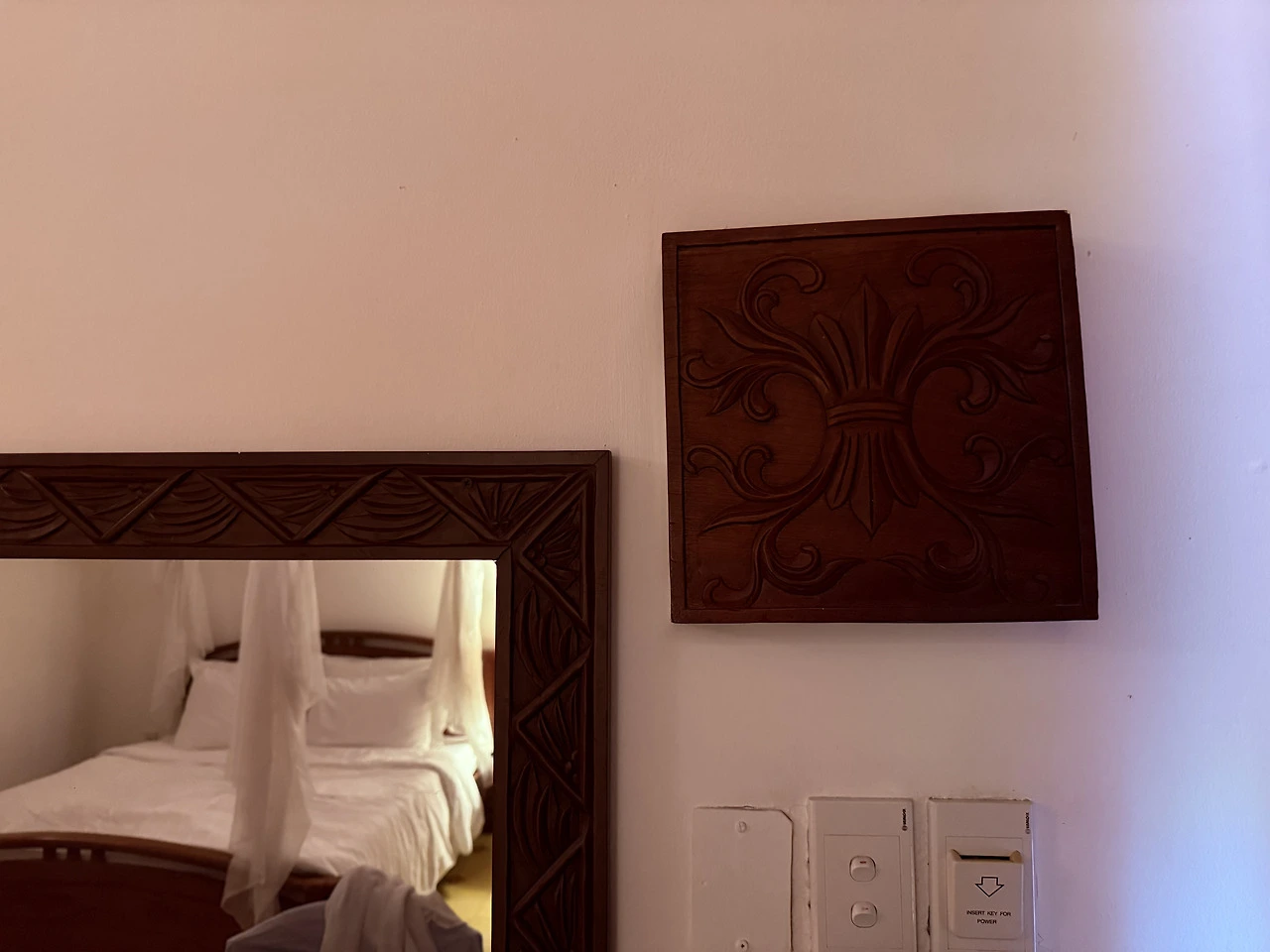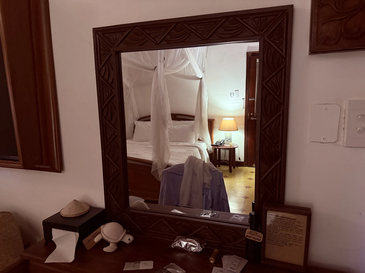 침대 위엔 얇은 흰색 모기장이 달려 있었다.