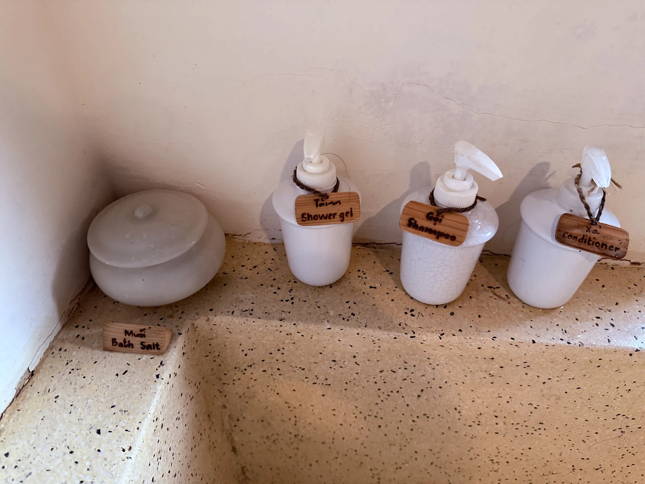 불도장으로 새겨진 샴푸와 컨디셔너,
