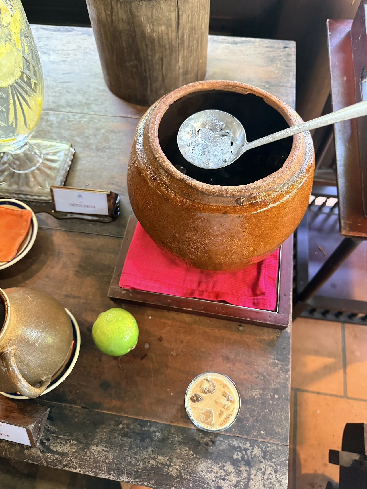 그 옆에는 얼음이 담긴 도기가 나란히 놓여 있었다.