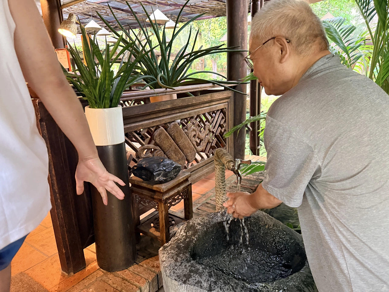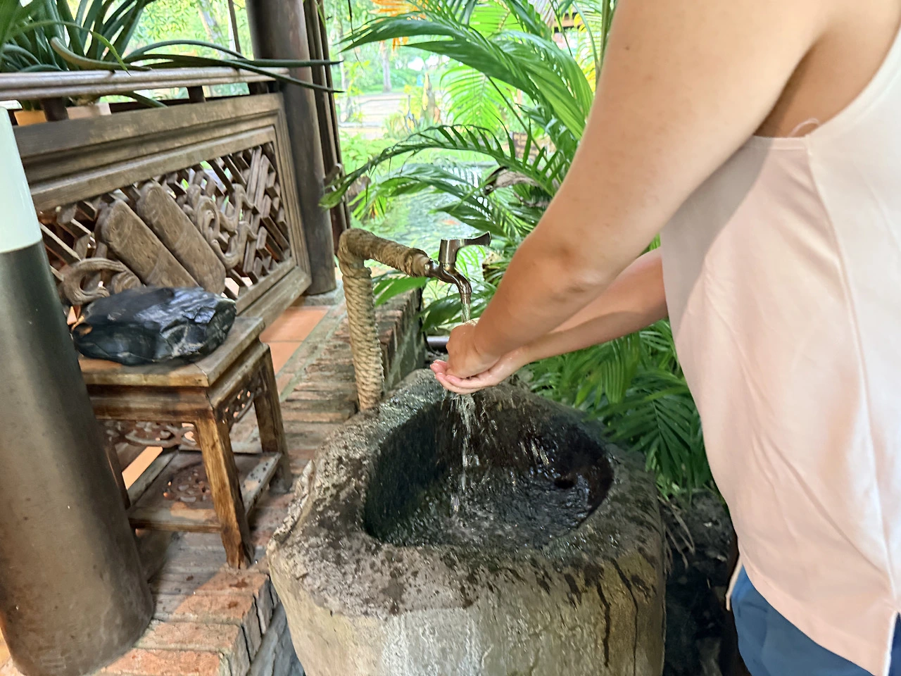 입구에는 자연석으로 만든 손 씻는 공간이 있었다.