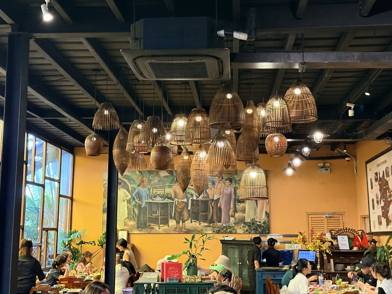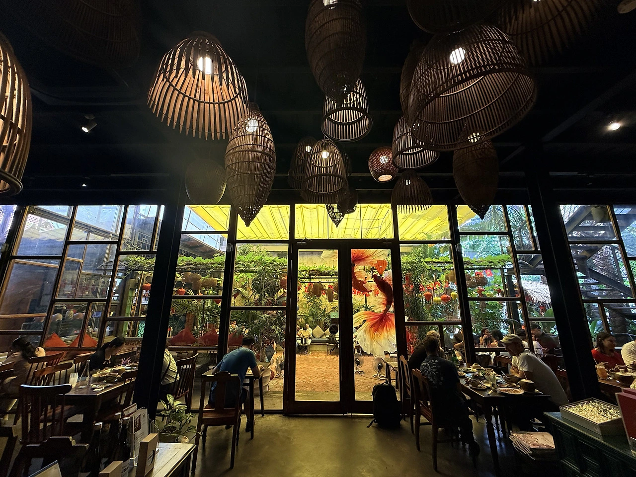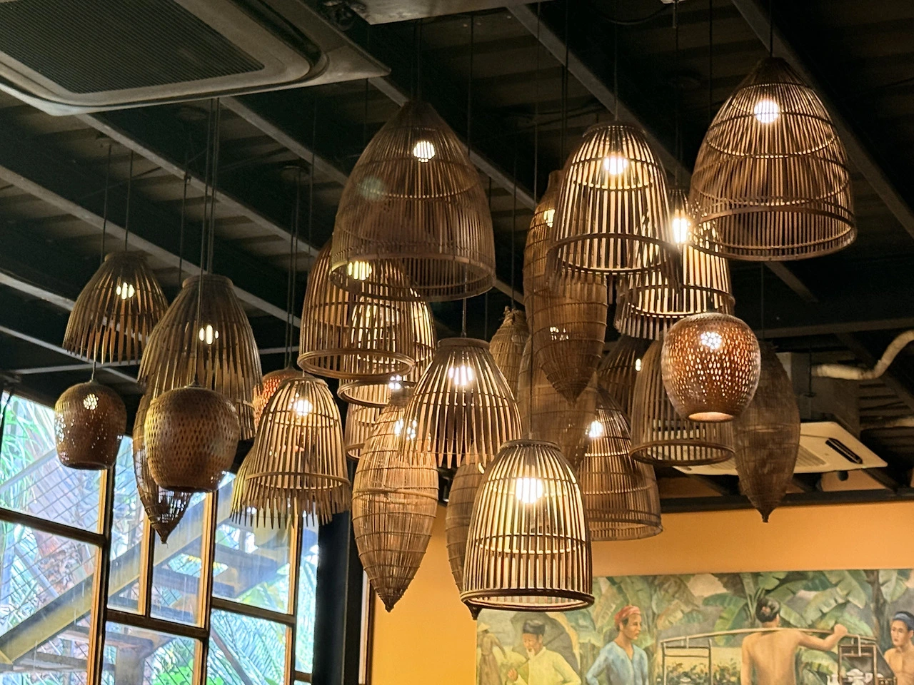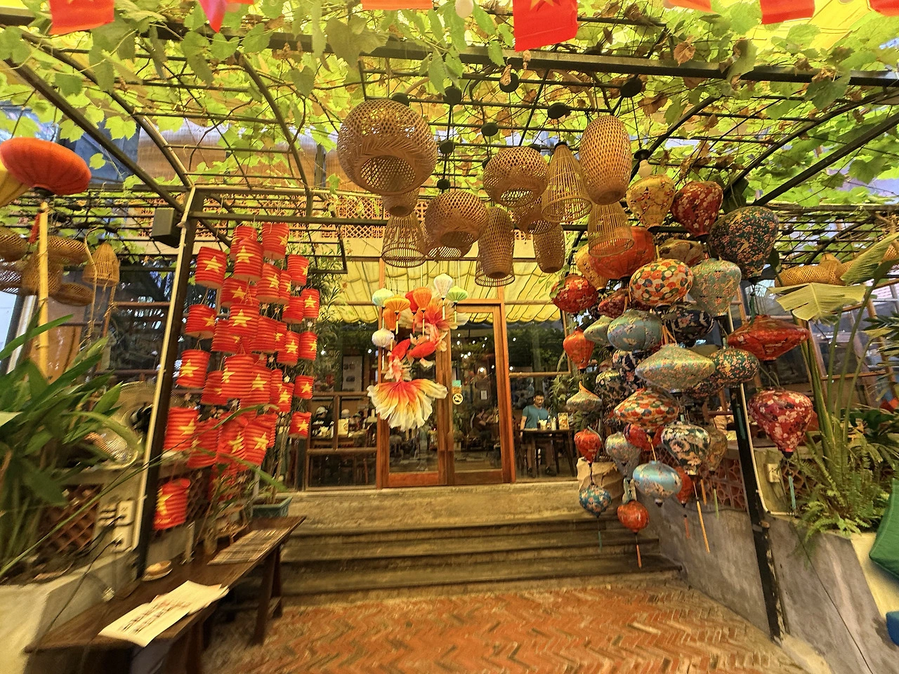 관광객에게 유명한 이 가게는 라탄 조명이 천천히 흔들리며
