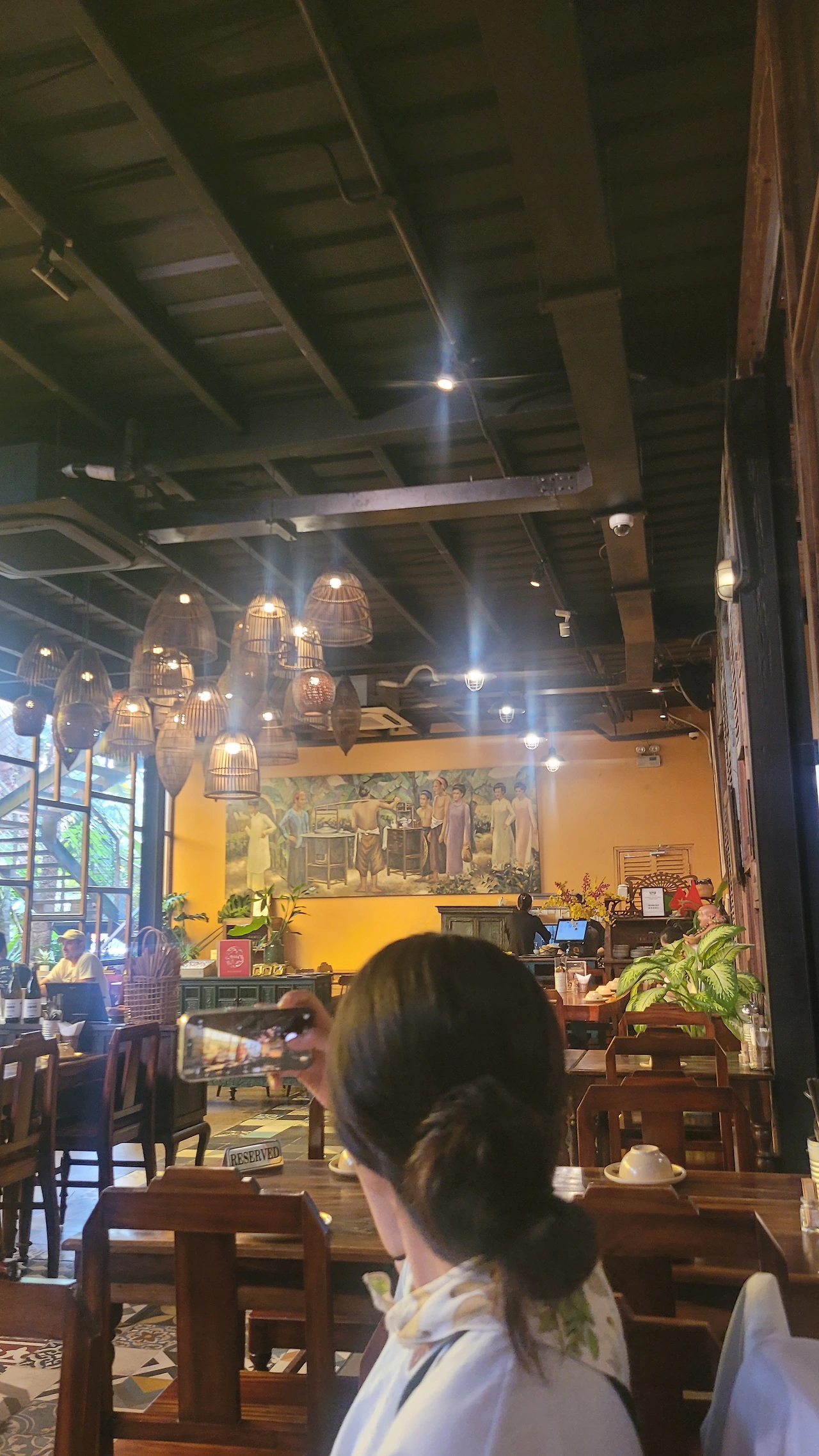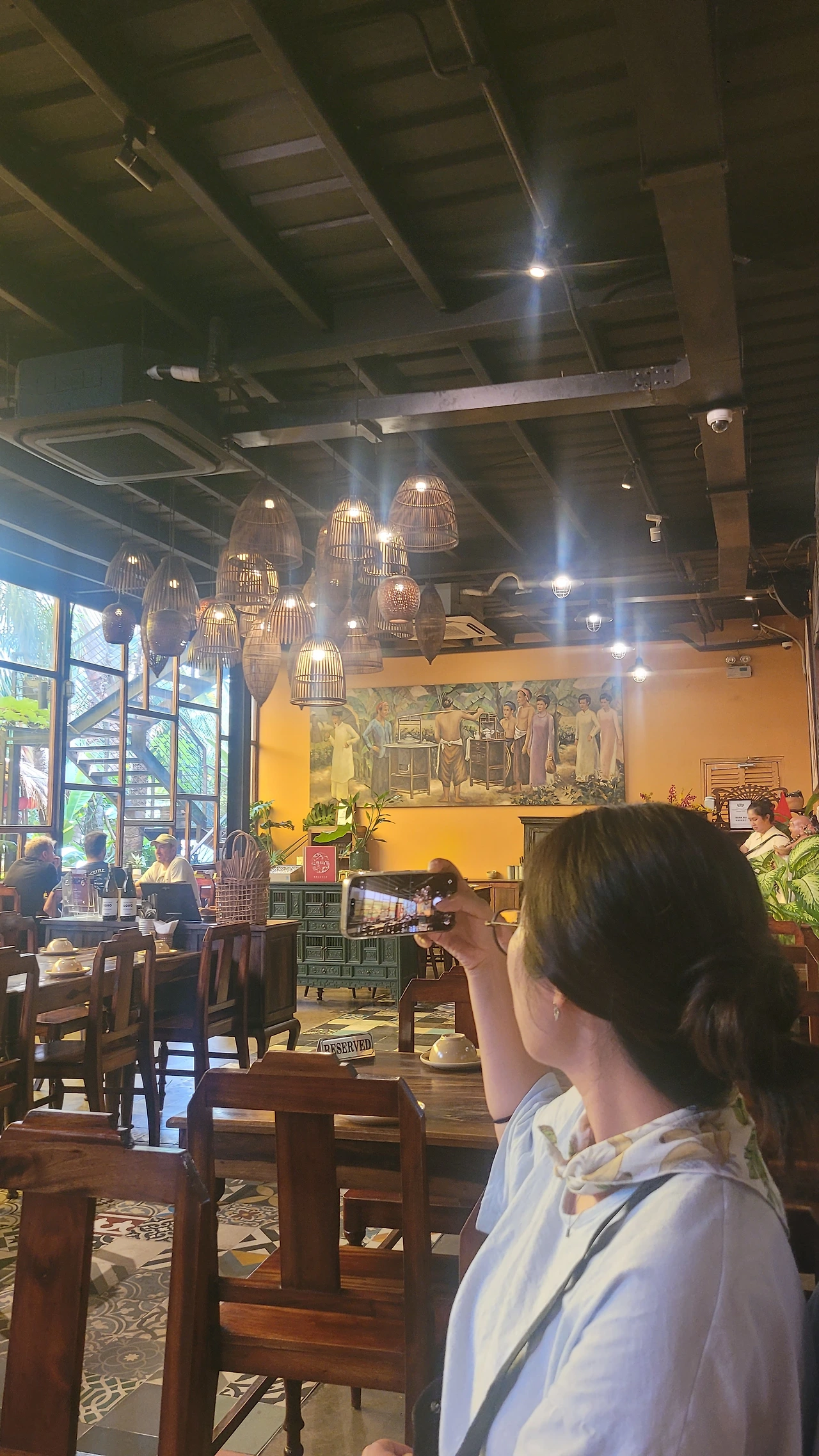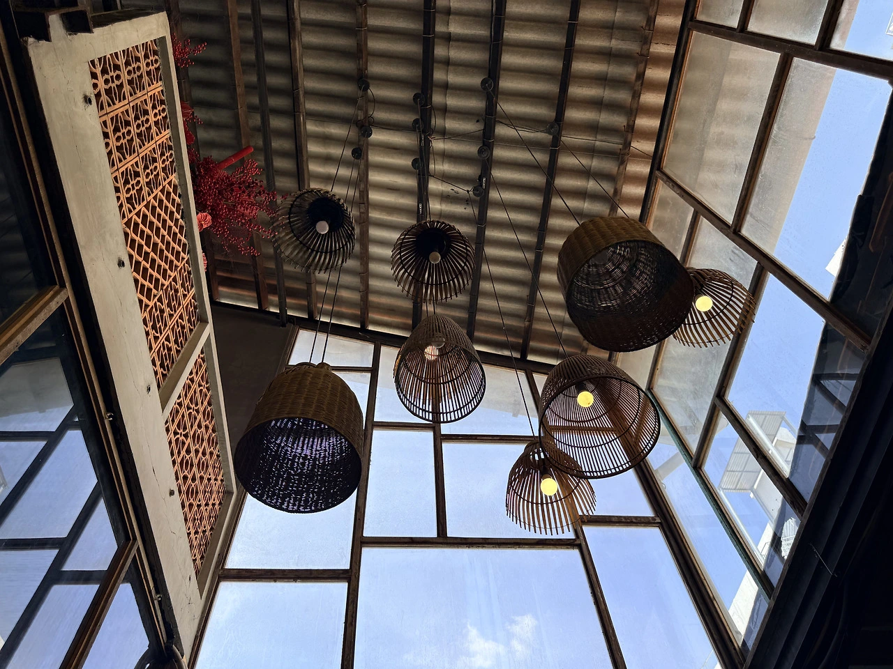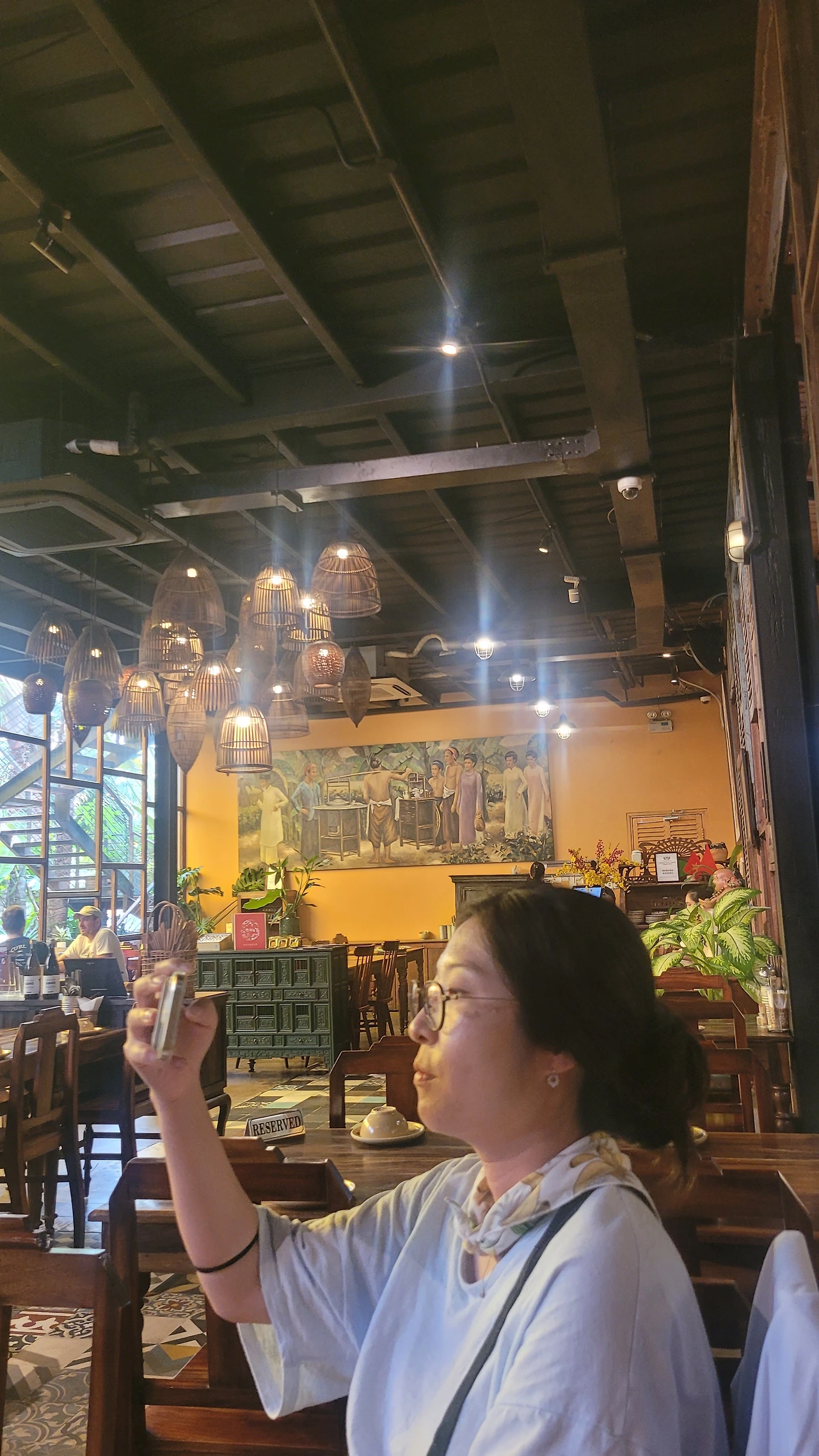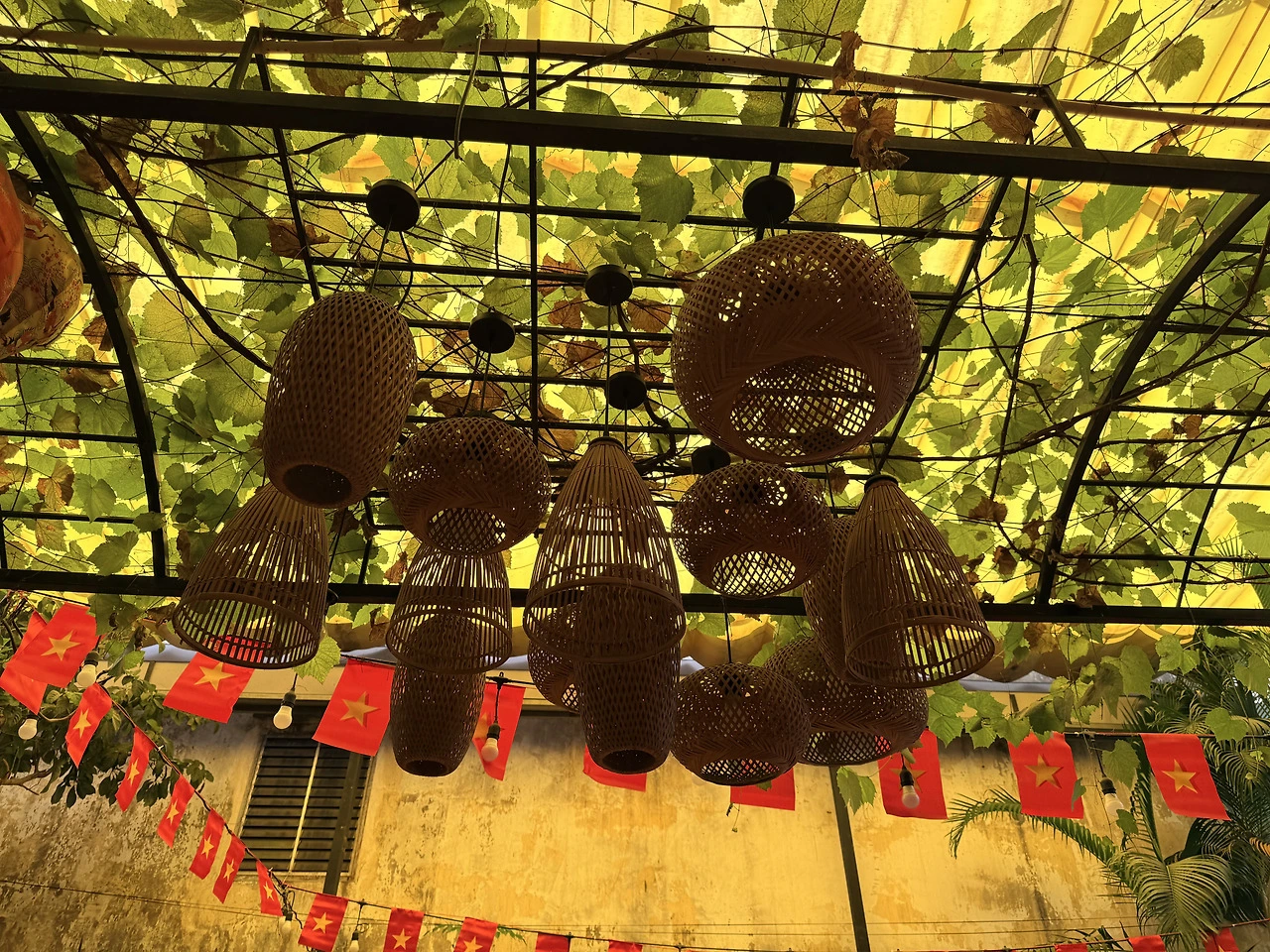 관광객에게 유명한 이 가게는 라탄 조명이 천천히 흔들리며
