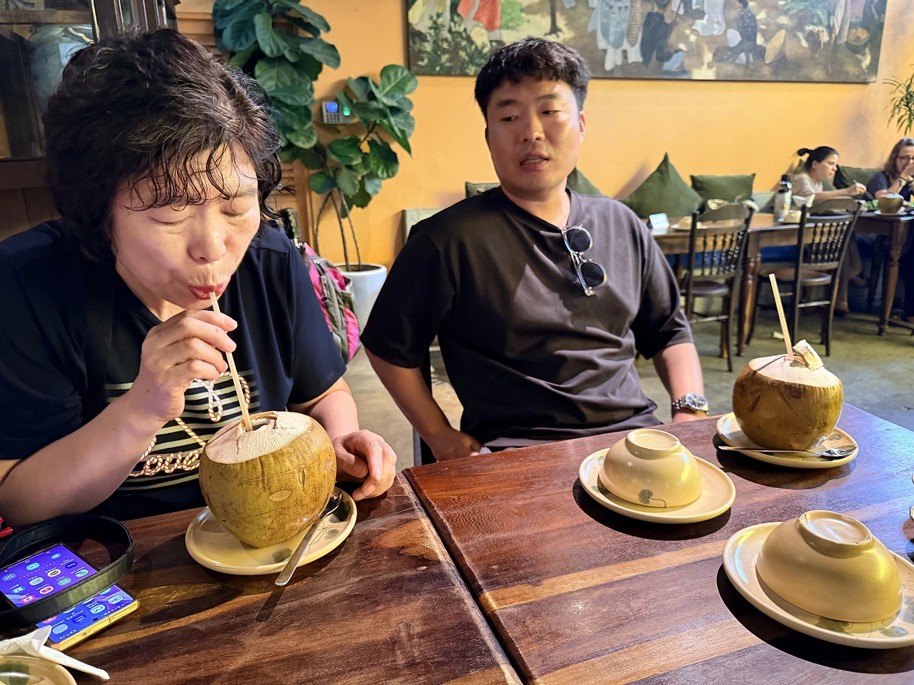 엄마와 동생은 코코넛워터를 세 잔이나 더 시켰고,