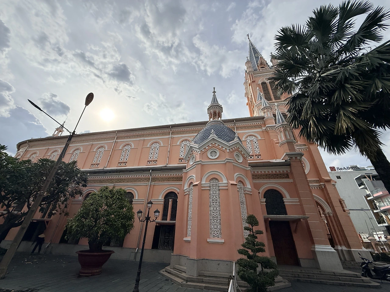 핑크색 외벽이 햇살에 물들어 있었다.