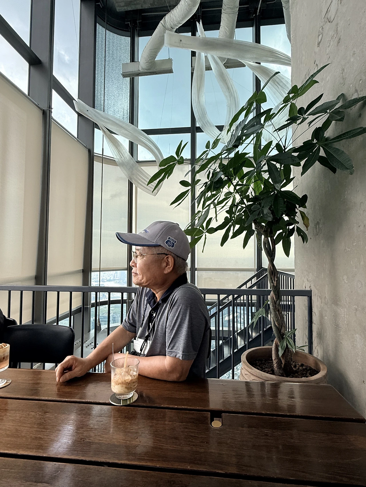그 꼭대기층 카페에 앉았다.