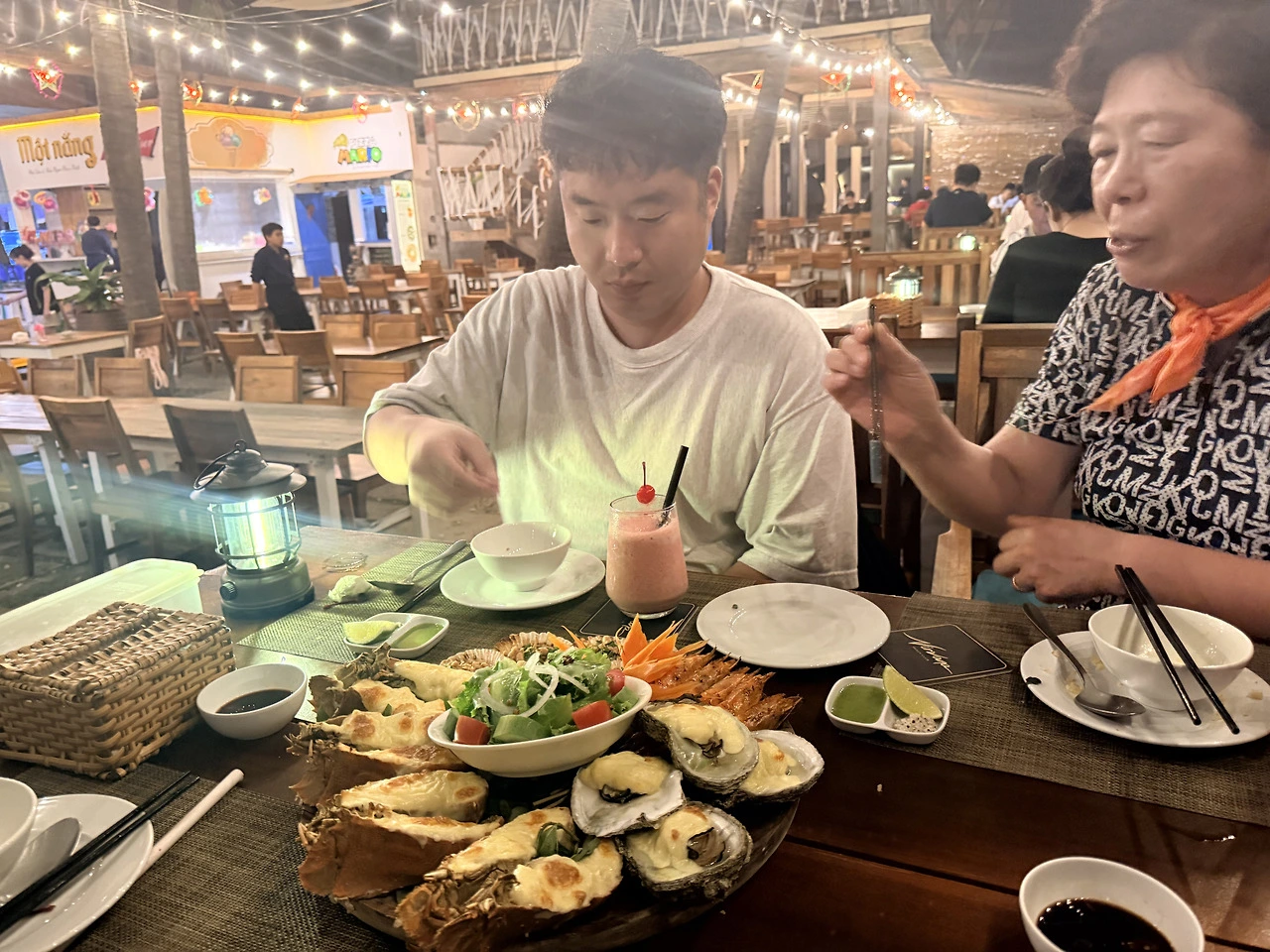 저녁은 해변 앞 모뜨낭 씨푸드(Một Nắng Seafood).