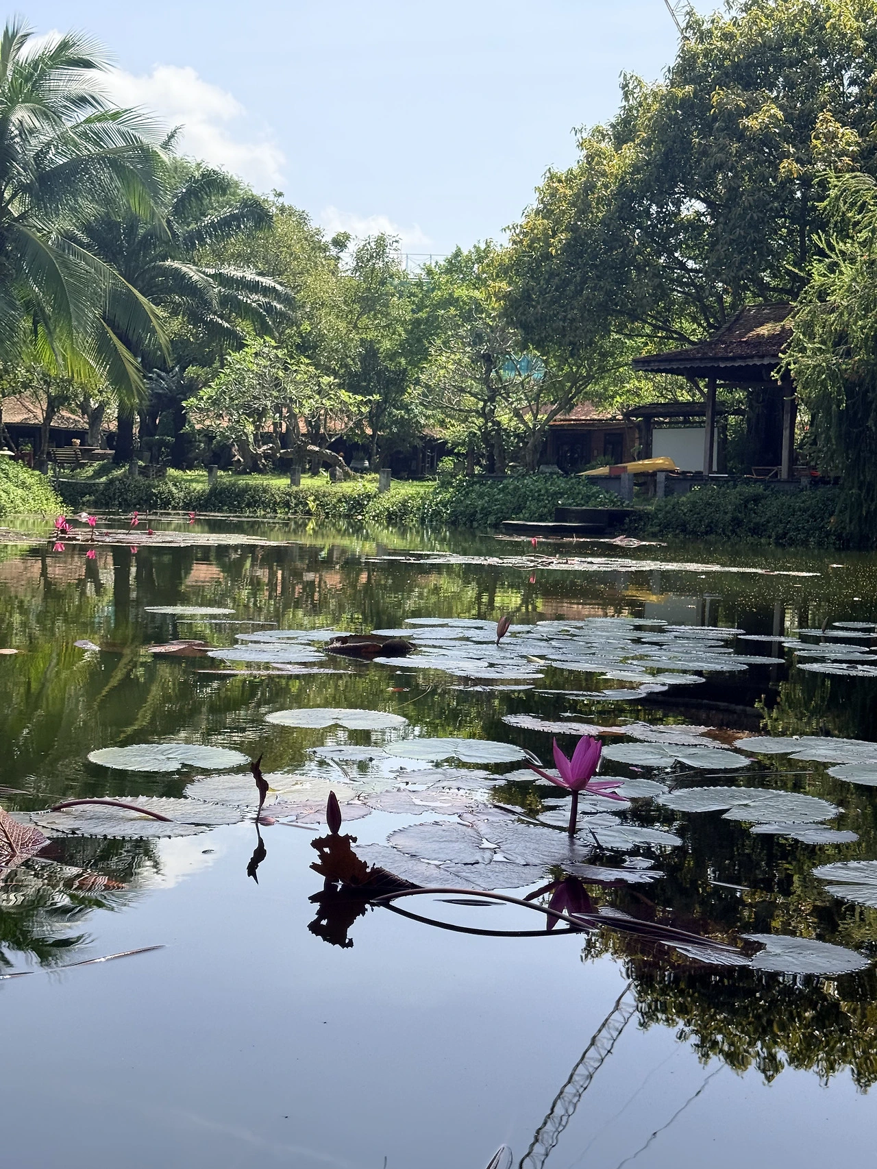 작은 바람이 연못의 잎사귀를 흔들었다.