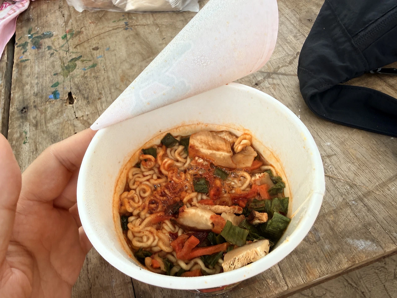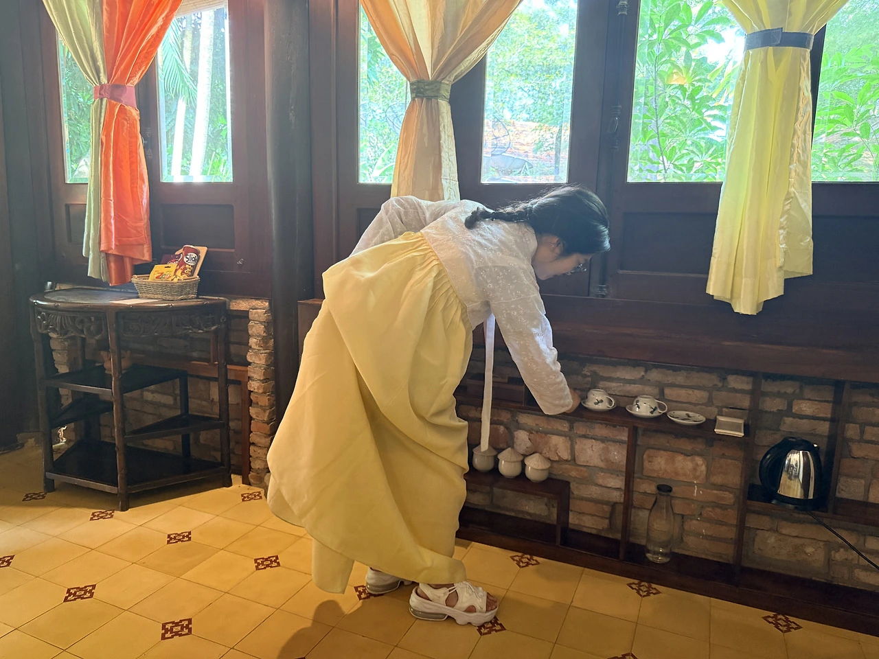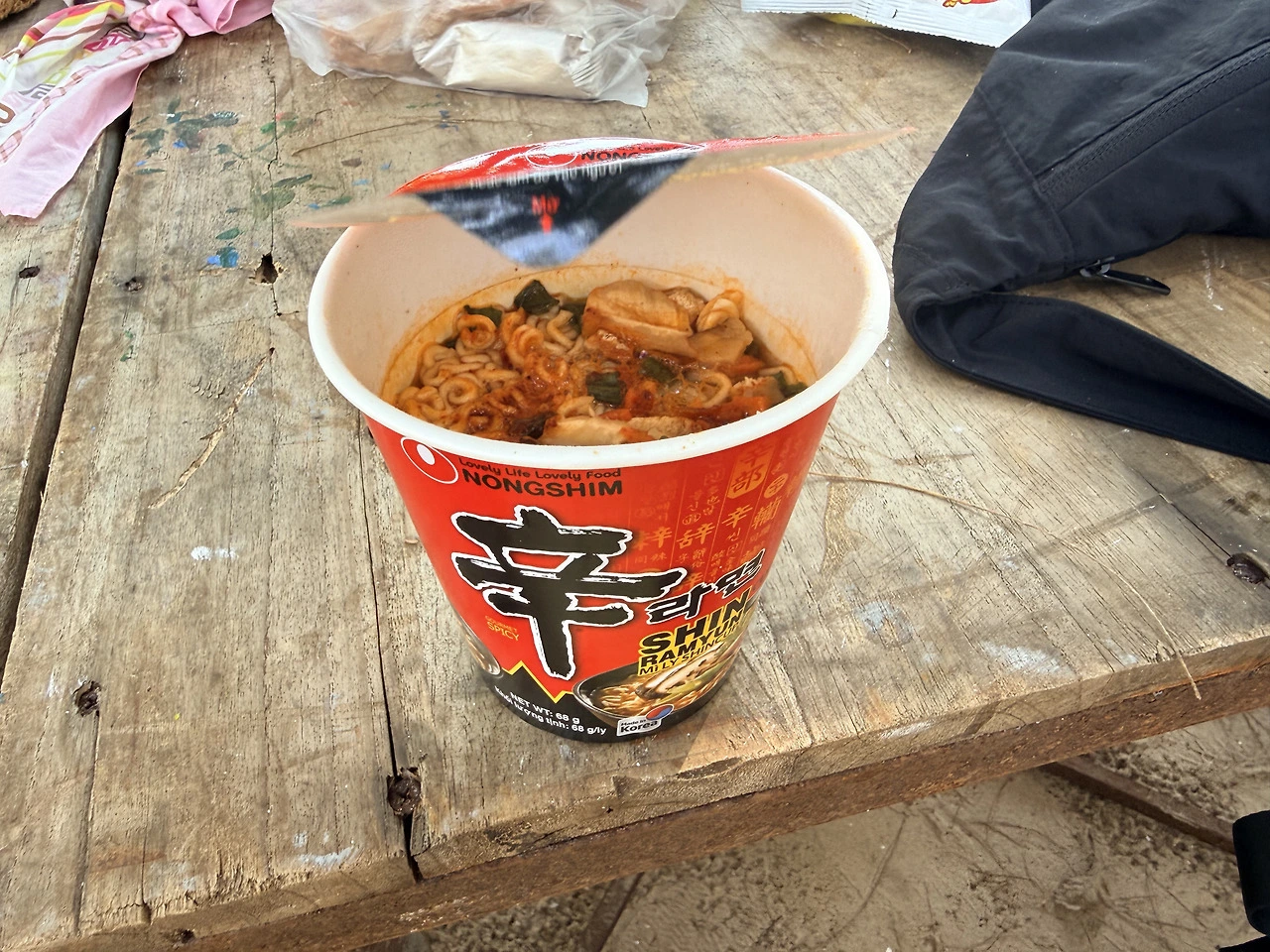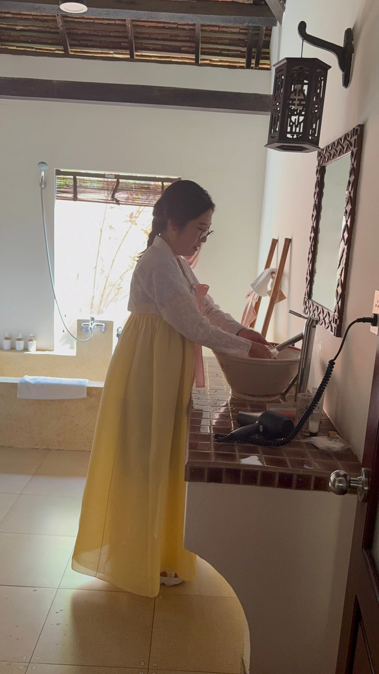 그리고 한복을 입은 한국 처녀의 라면 식사.
